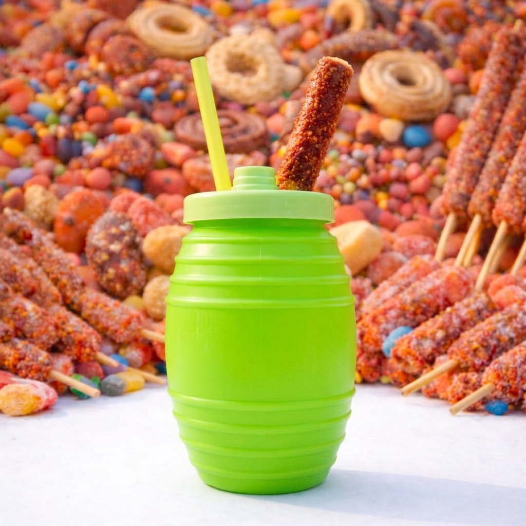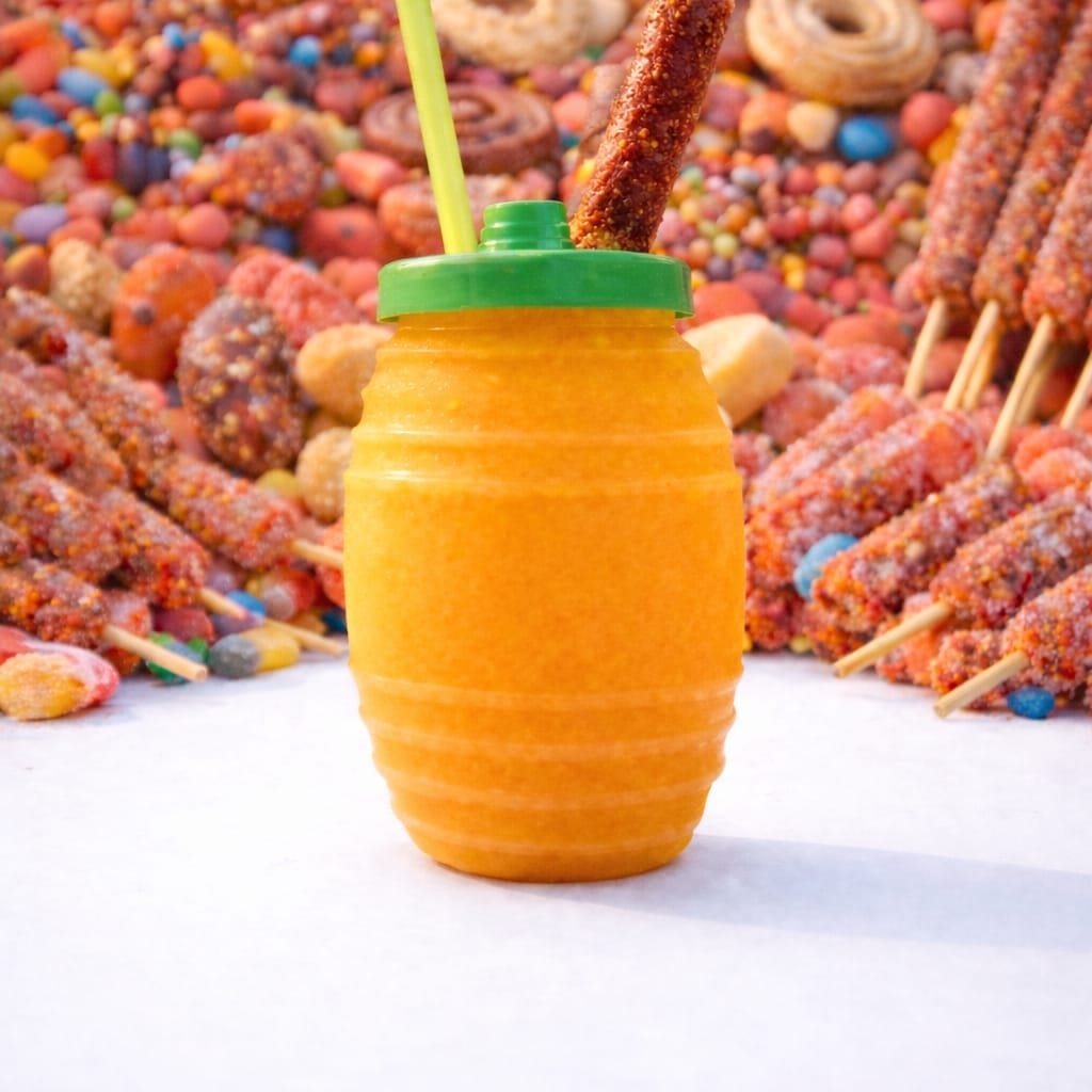 Sabor mango con chicle, gomitas, banderilla de tamarindo, chamoy y miguelito