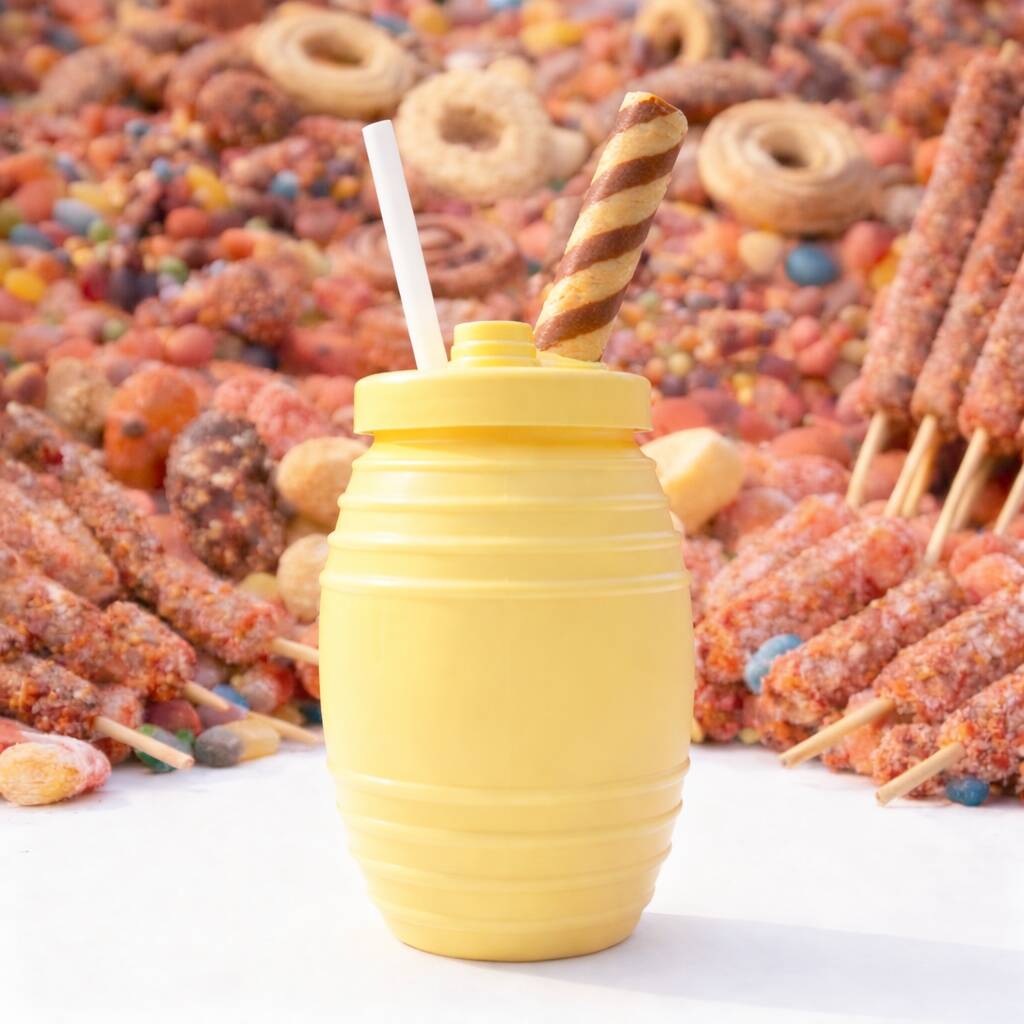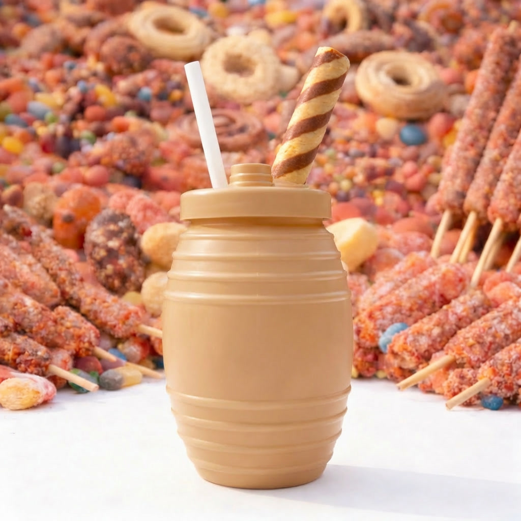 Sabor rompope, 2 wafer stick, galleta, escarchado por dentro de lechera y chispas de chocolate