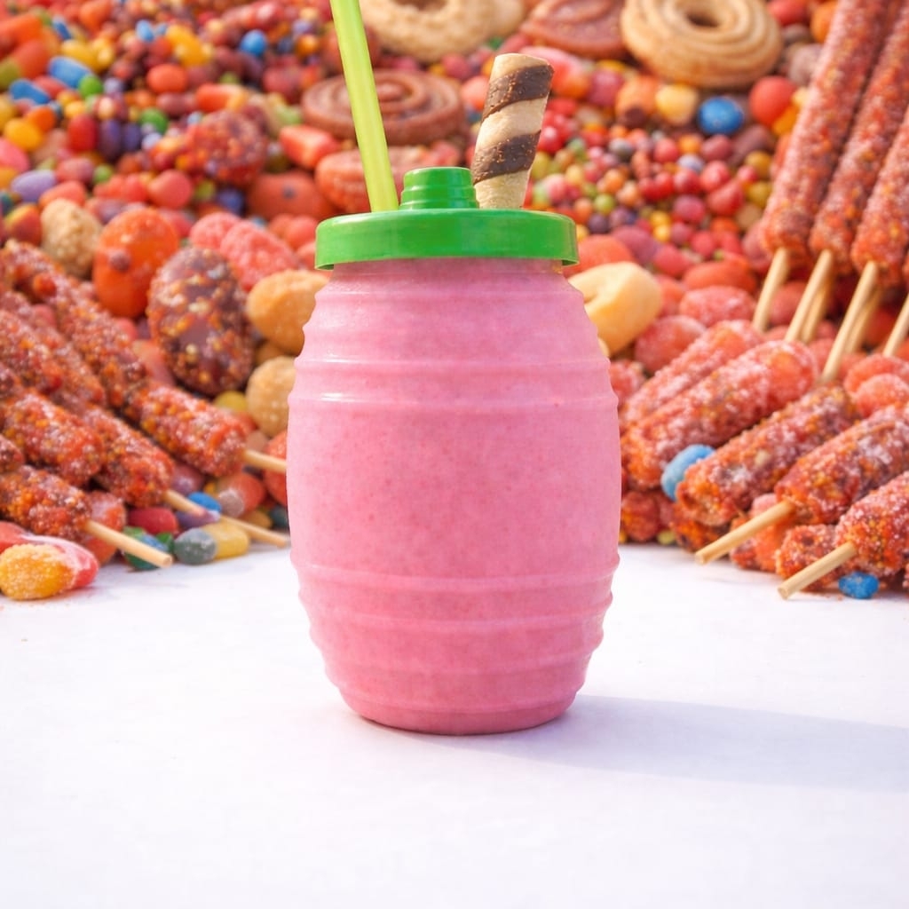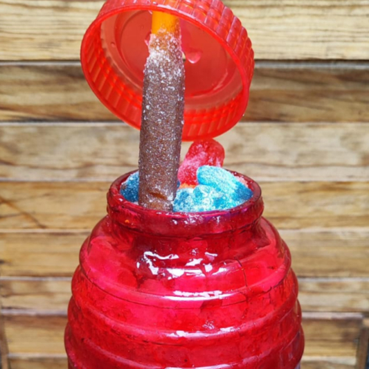 Escarchado por dentro del vitrolero sabor picafresa,jarabe sabor chicle,banderilla de tamarindo azucarado,chamoy, Miguelito,gomitas