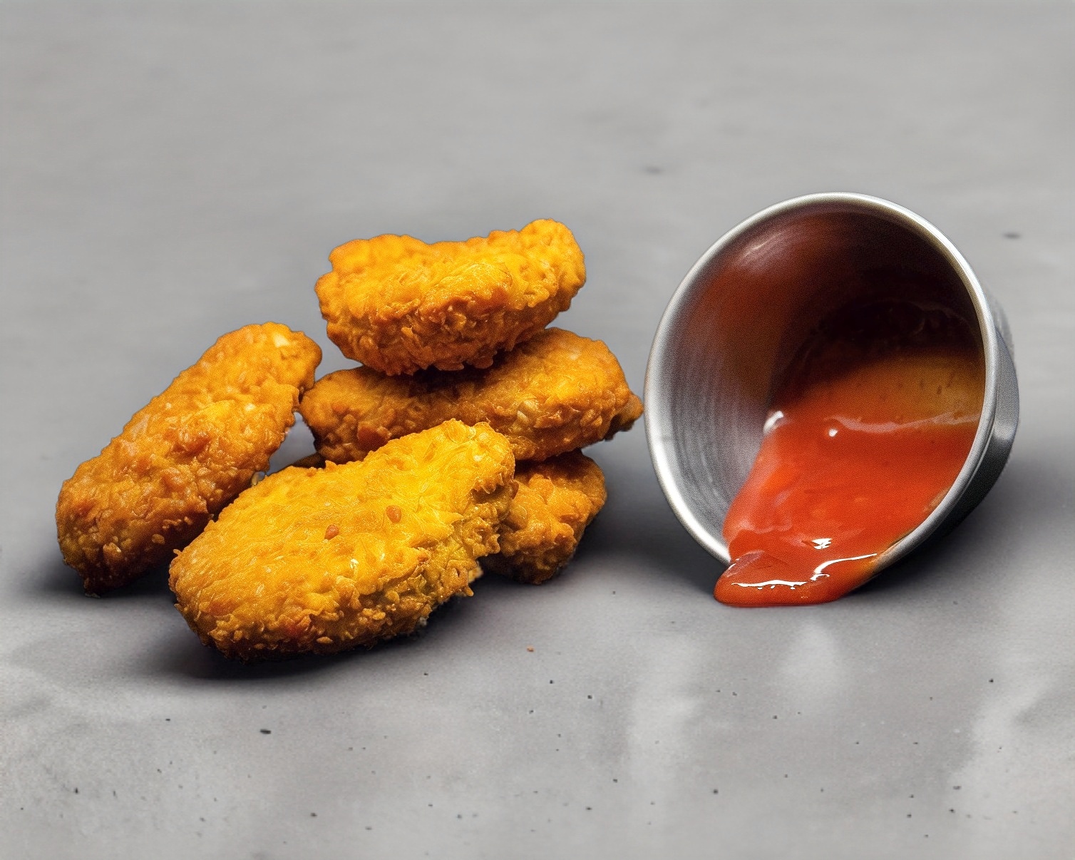 Cinco (5) piezas de Chicken Nuggets de Pollo acompañadas con uno de nuestros aderezos o salsas.
