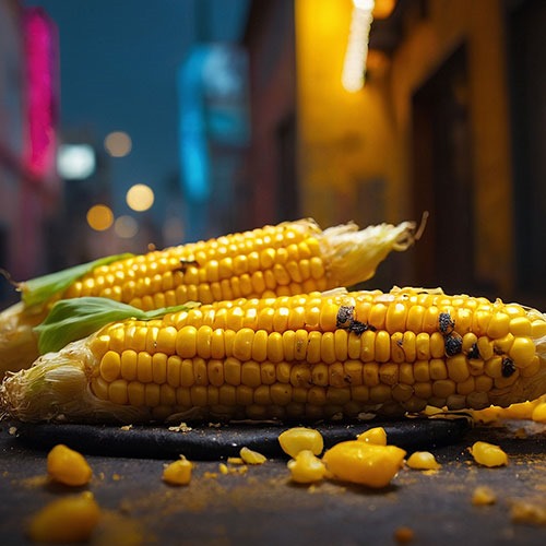 Elote amarillo frito y espolvoreado con nuestra mezcla de especias.