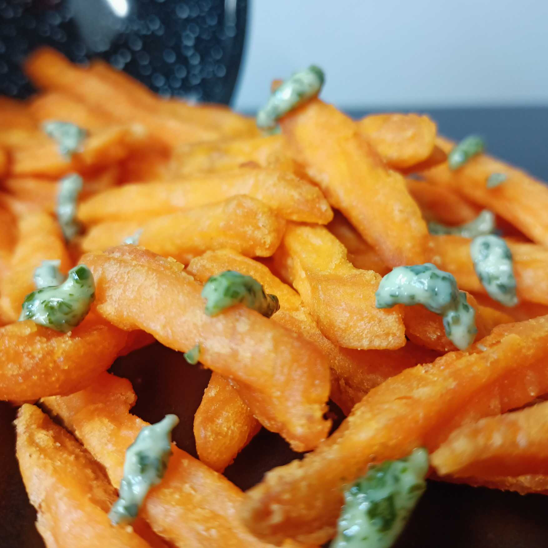250 g De camotes más 2 Onzas de dip de perejil y ajo.