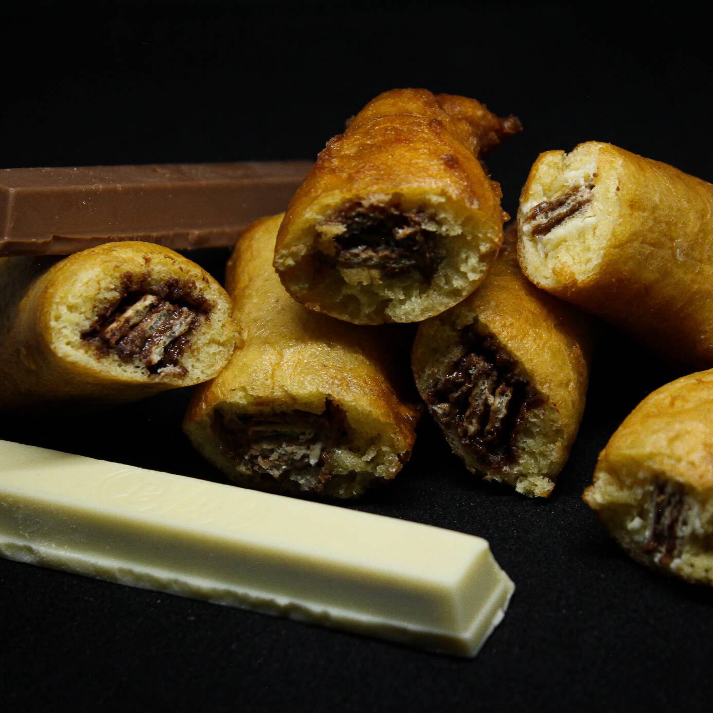 Porción Personal 3 Palitos de Kit Kat bañados en nuestra mezcla secreta y por supuesto ¡Frito! es un must si estás buscando algo dulce que te vuele la cabeza.
