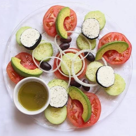 Con queso de cabra, aguacate, pepino, jitomate, cebolla, eneldo y aceitunas 530 gramos.