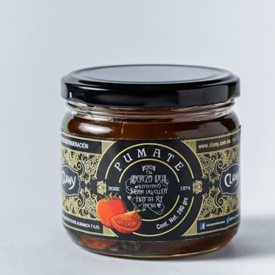 Jitomate deshidratado en aceite de olivo, ajo y albahaca.
