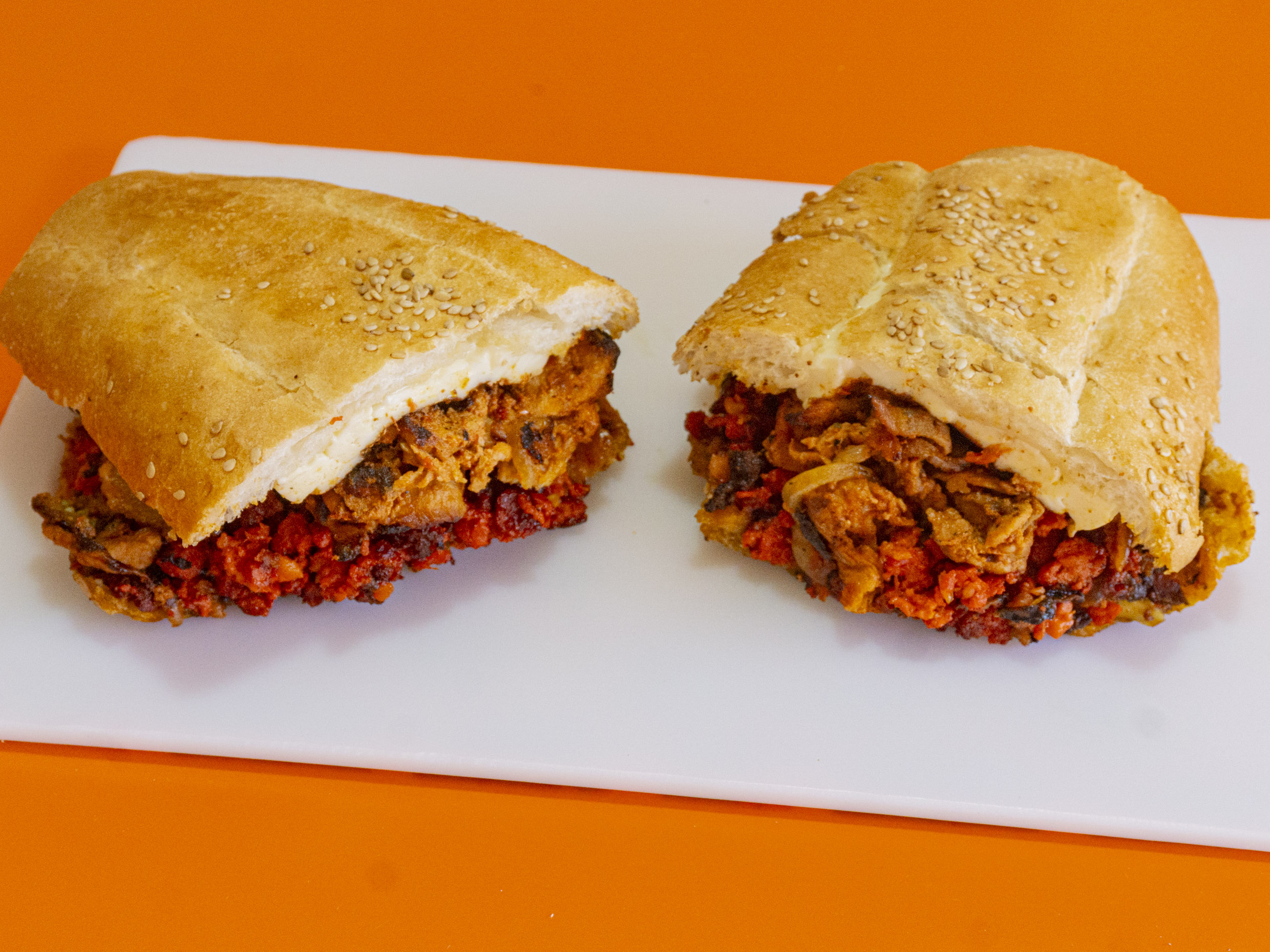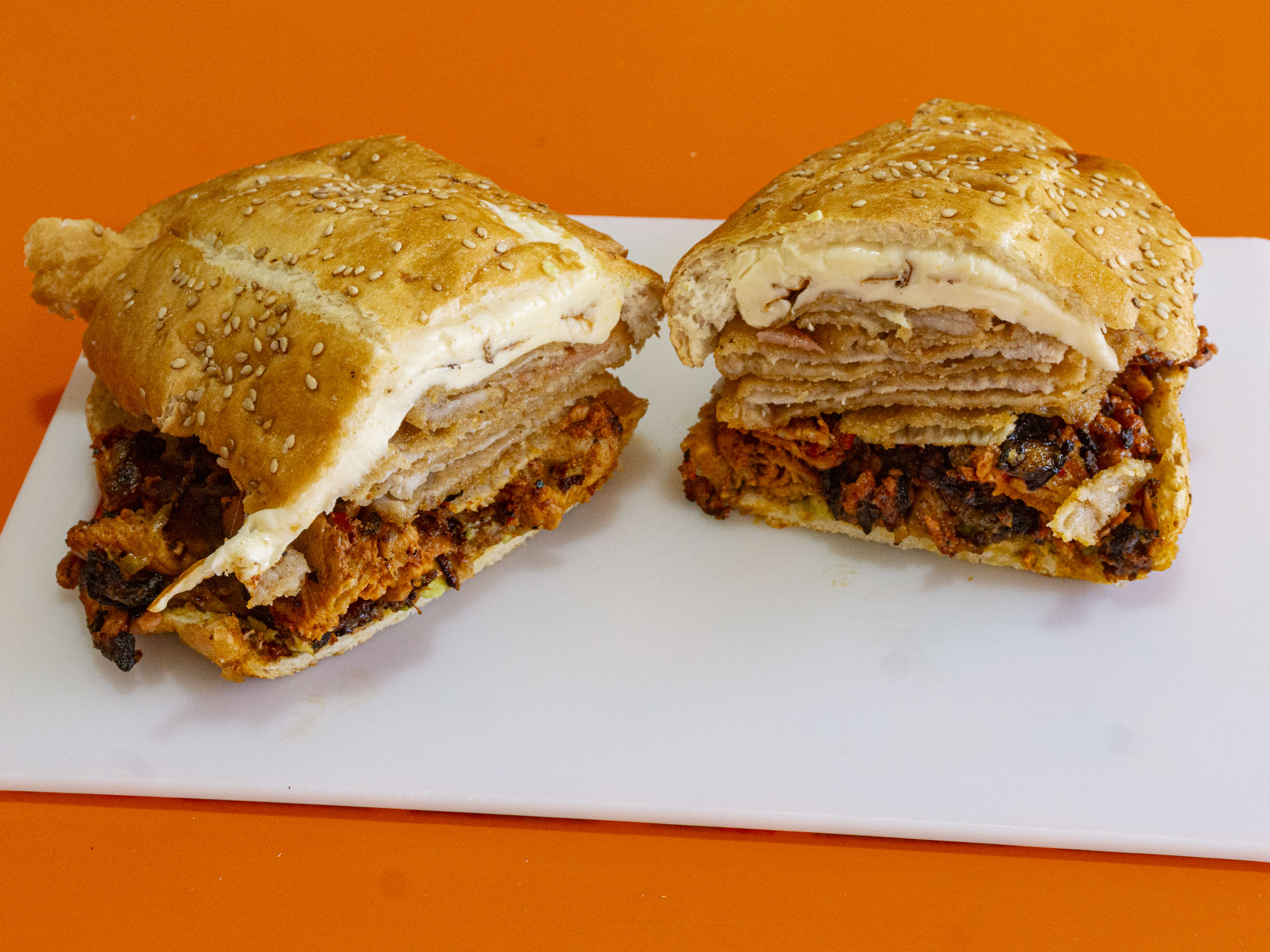 Milanesa de puerco y queso Oaxaca (esta es la versión CHICA el pan mide 14 a 16 cm)