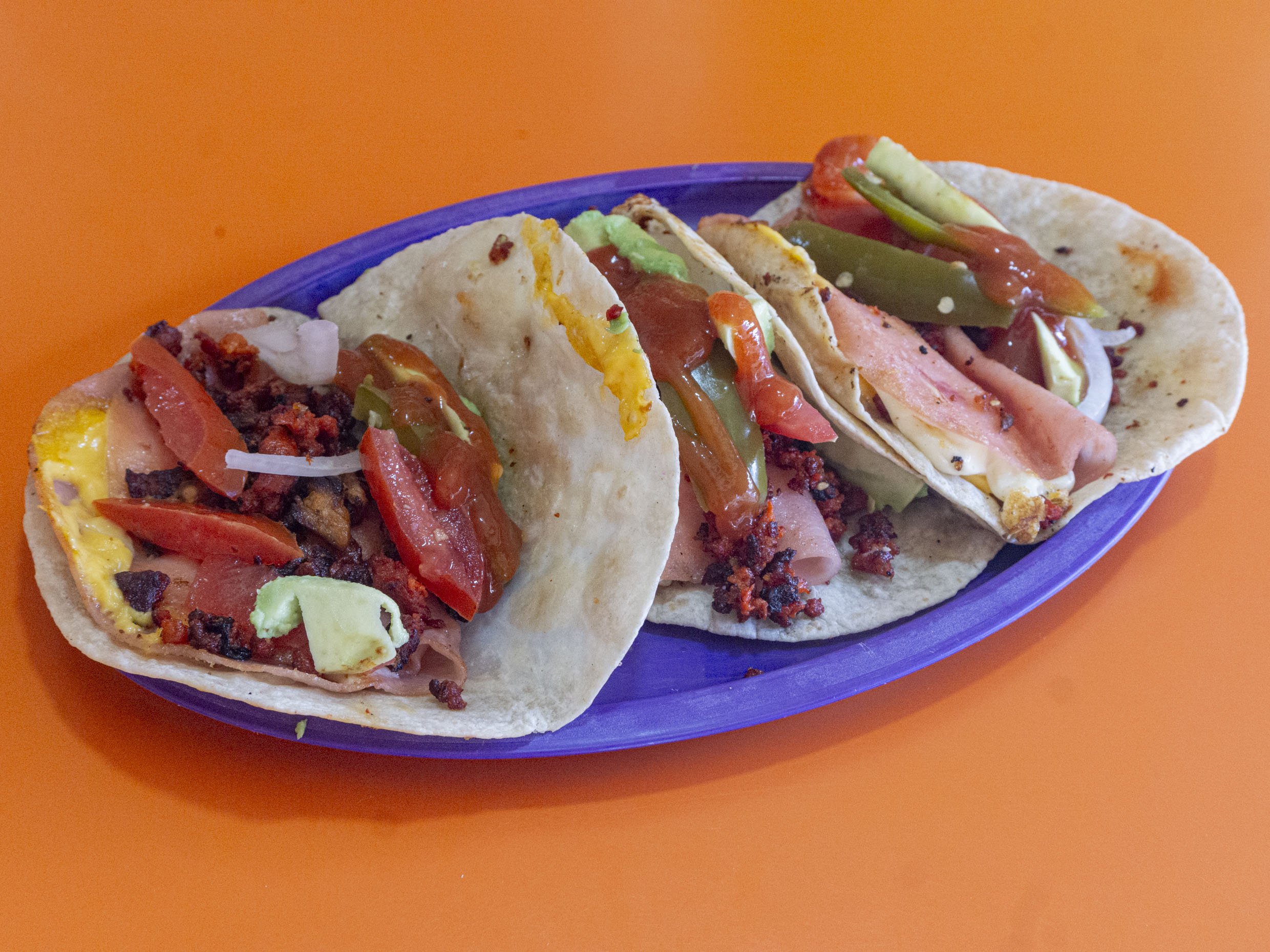 Con quesillo, queso amarillo, jamón, chorizo, jitomate, cebolla, aguacate y cátsup.