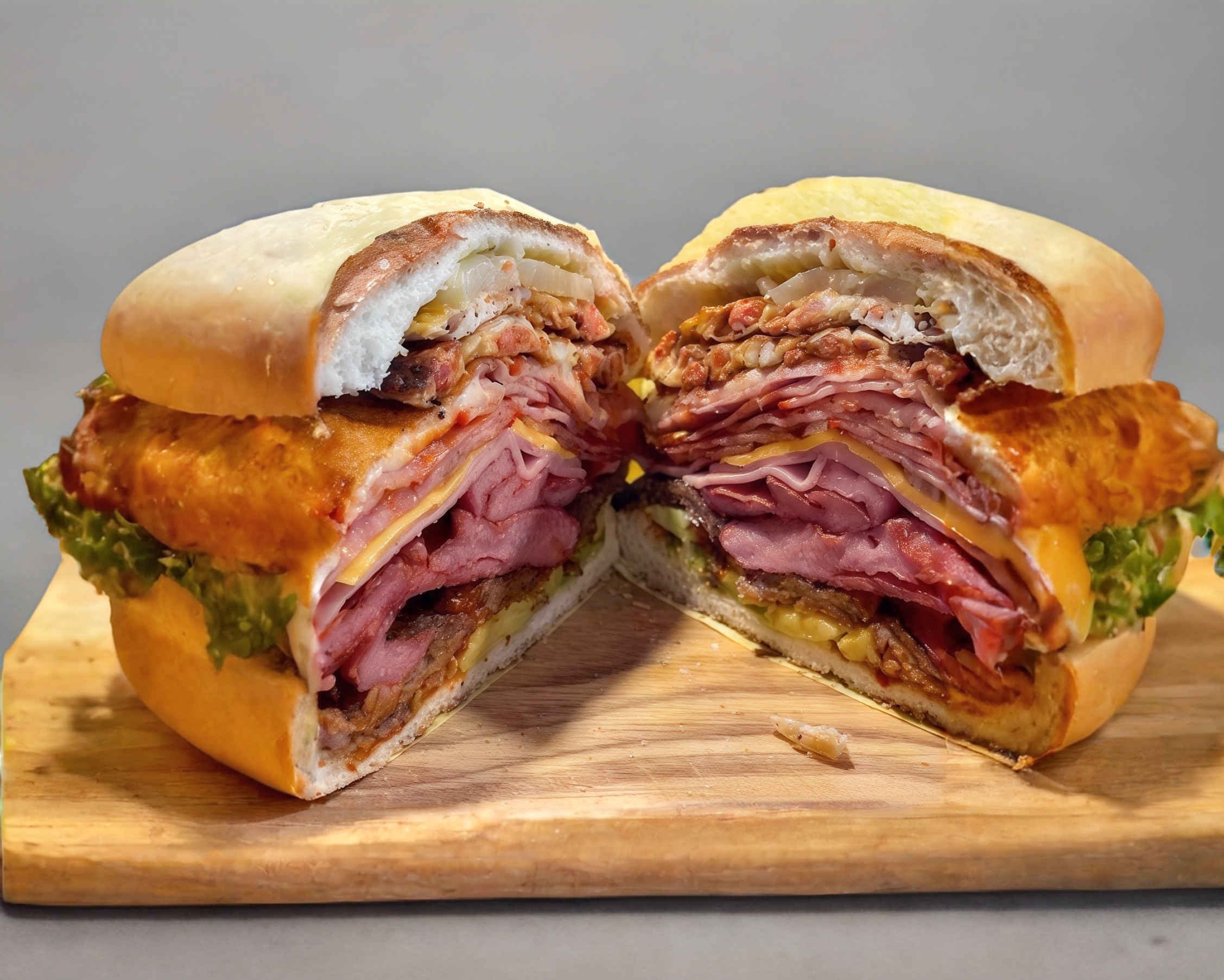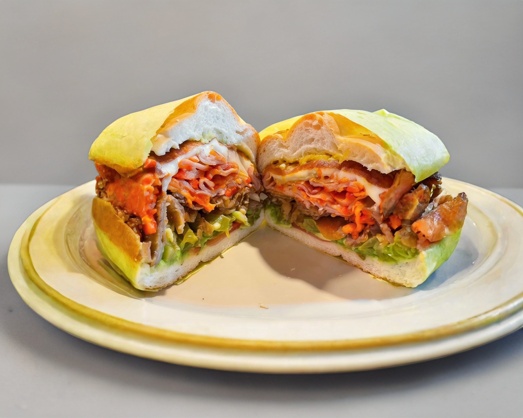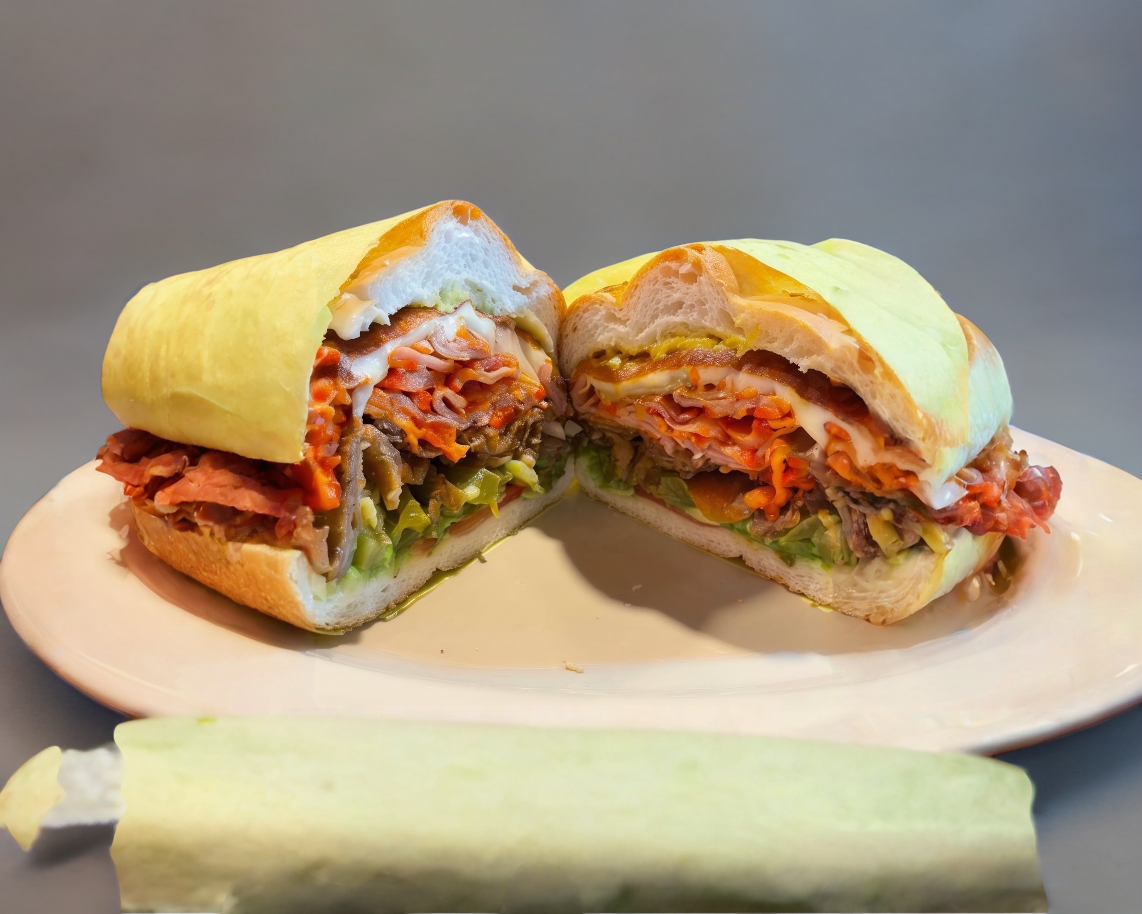 Mianesa de puerco, queso blanco, queso amarillo, quesillo, mayonesa, mostaza, aguacate, jitomate, picantes