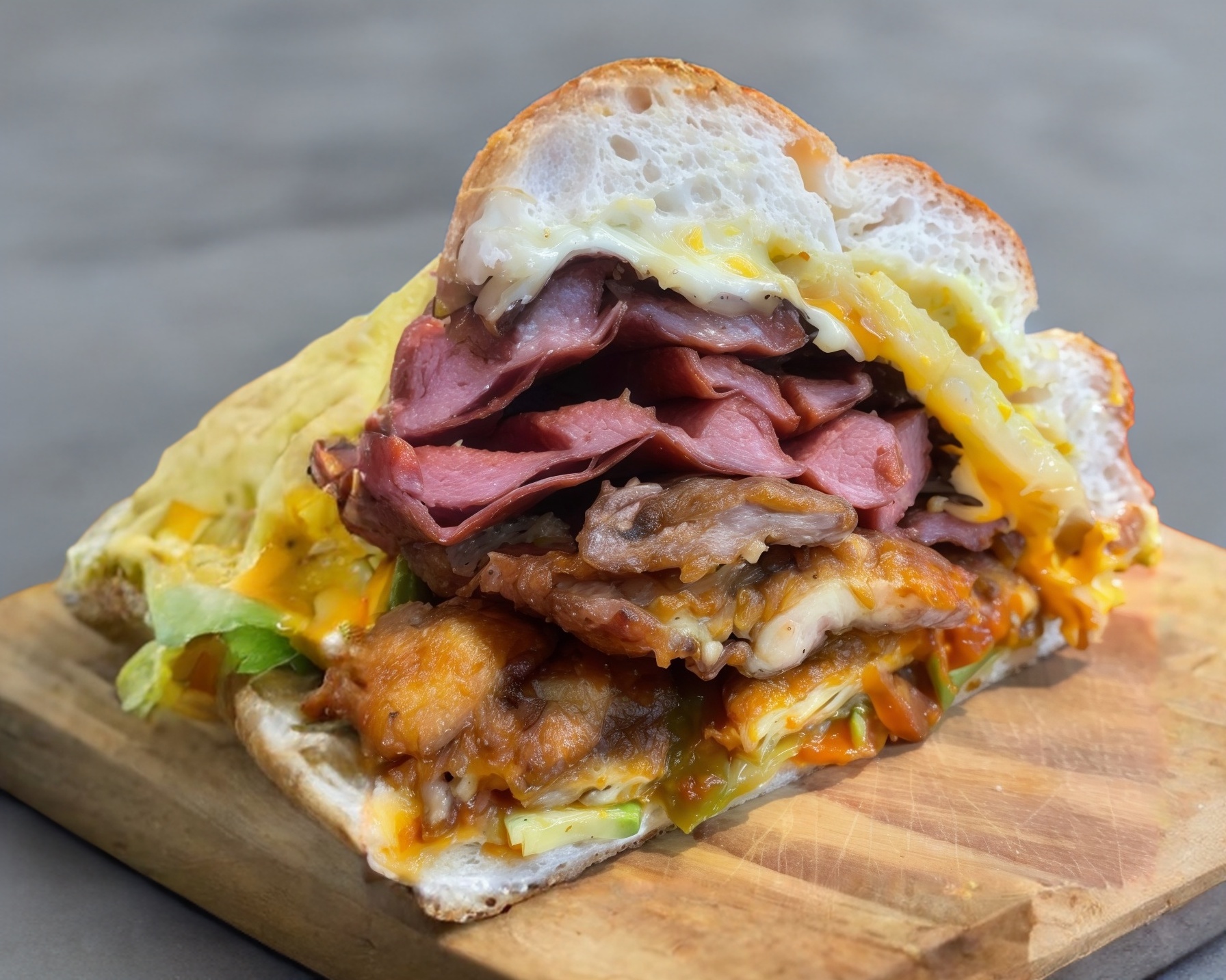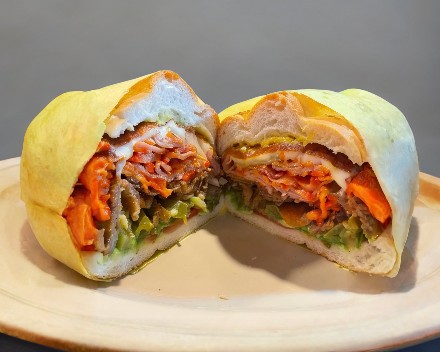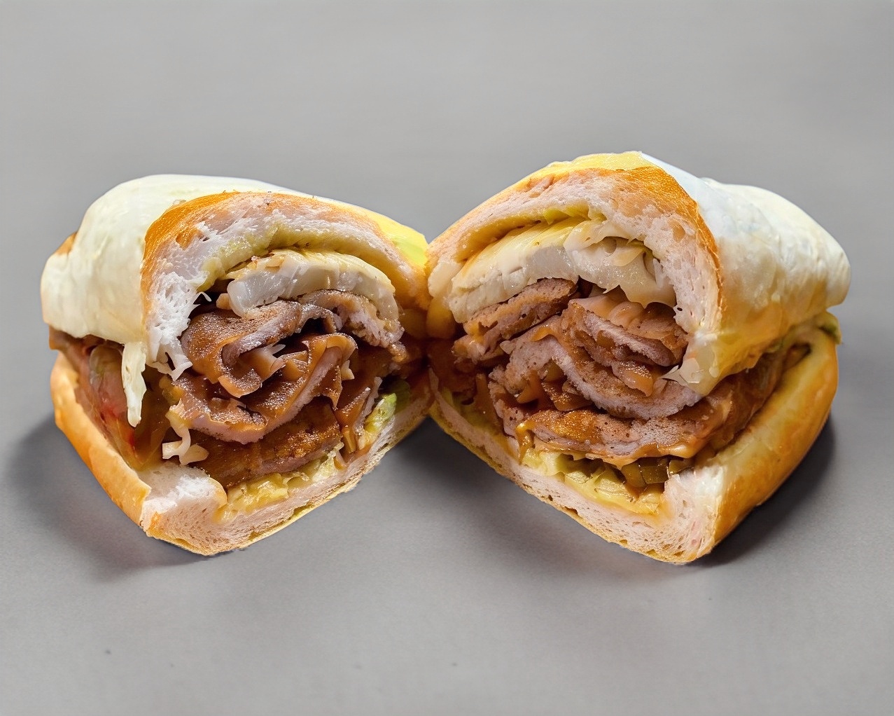 Mianesa de puerco, queso blanco, queso amarillo, quesillo, mayonesa, mostaza, aguacate, jitomate, picantes