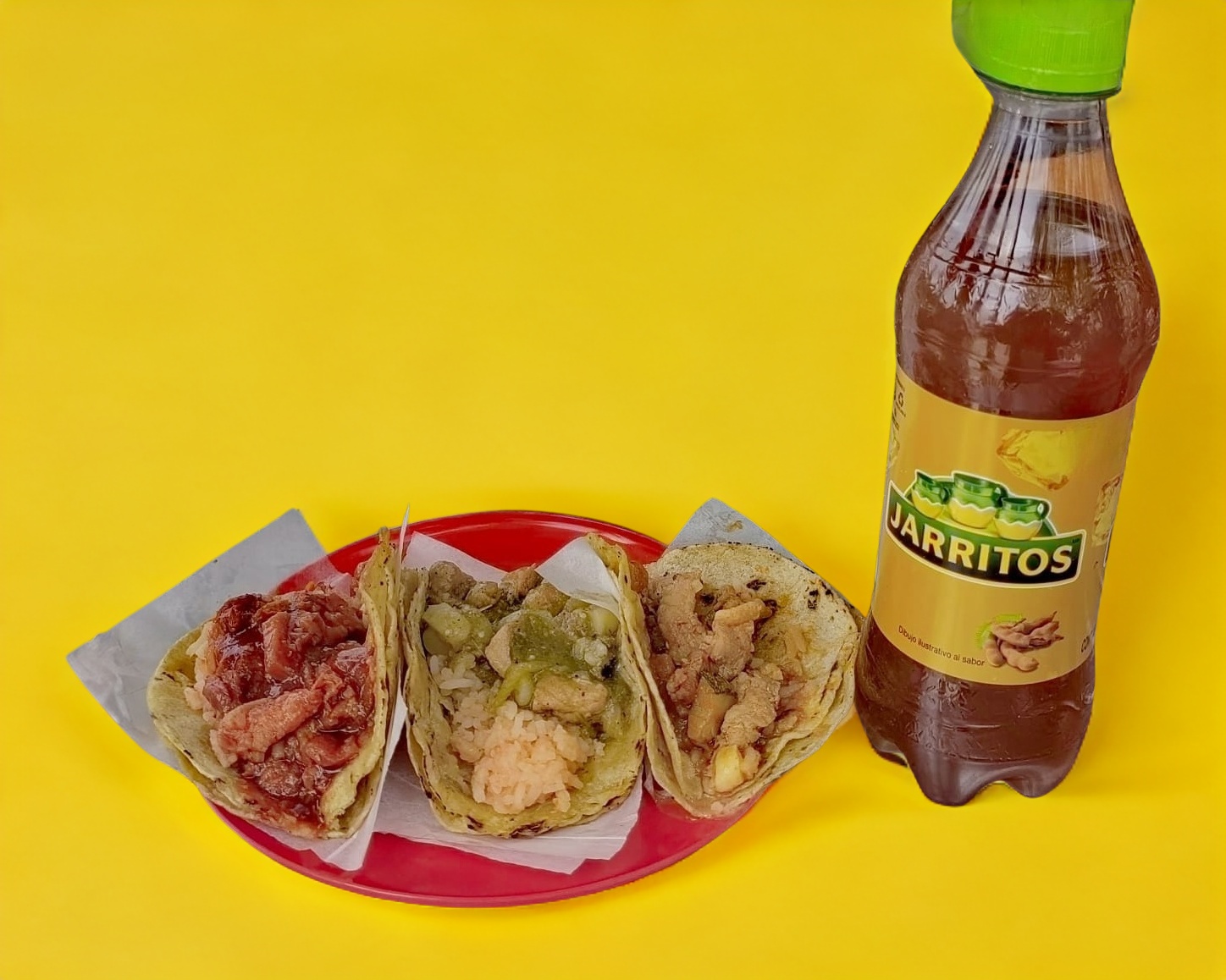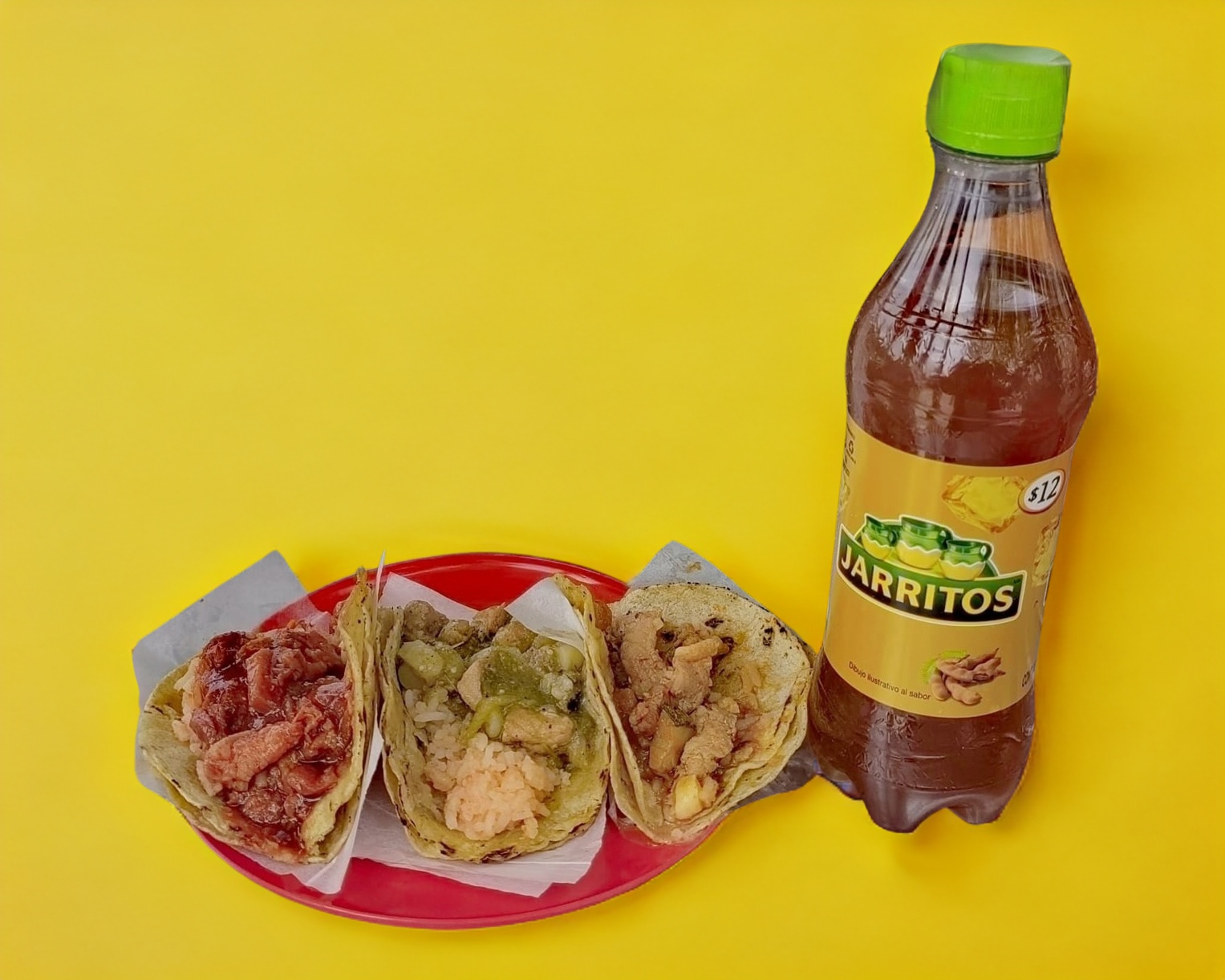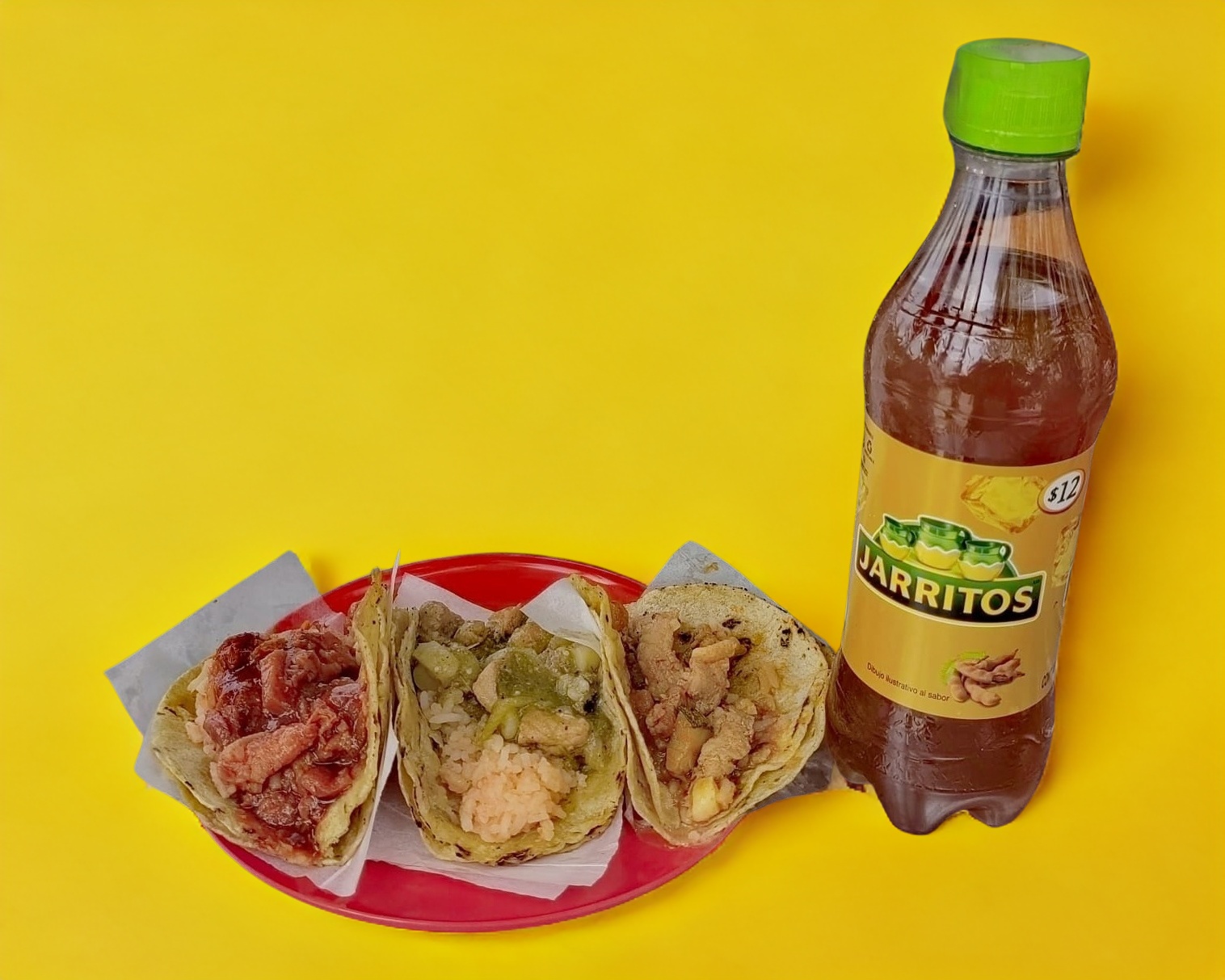 Elige tus 3 Tacos de Guisado Favorito*1 + Refresco Jarrit 600 ml Sabor Sujeto a disponilidad*1