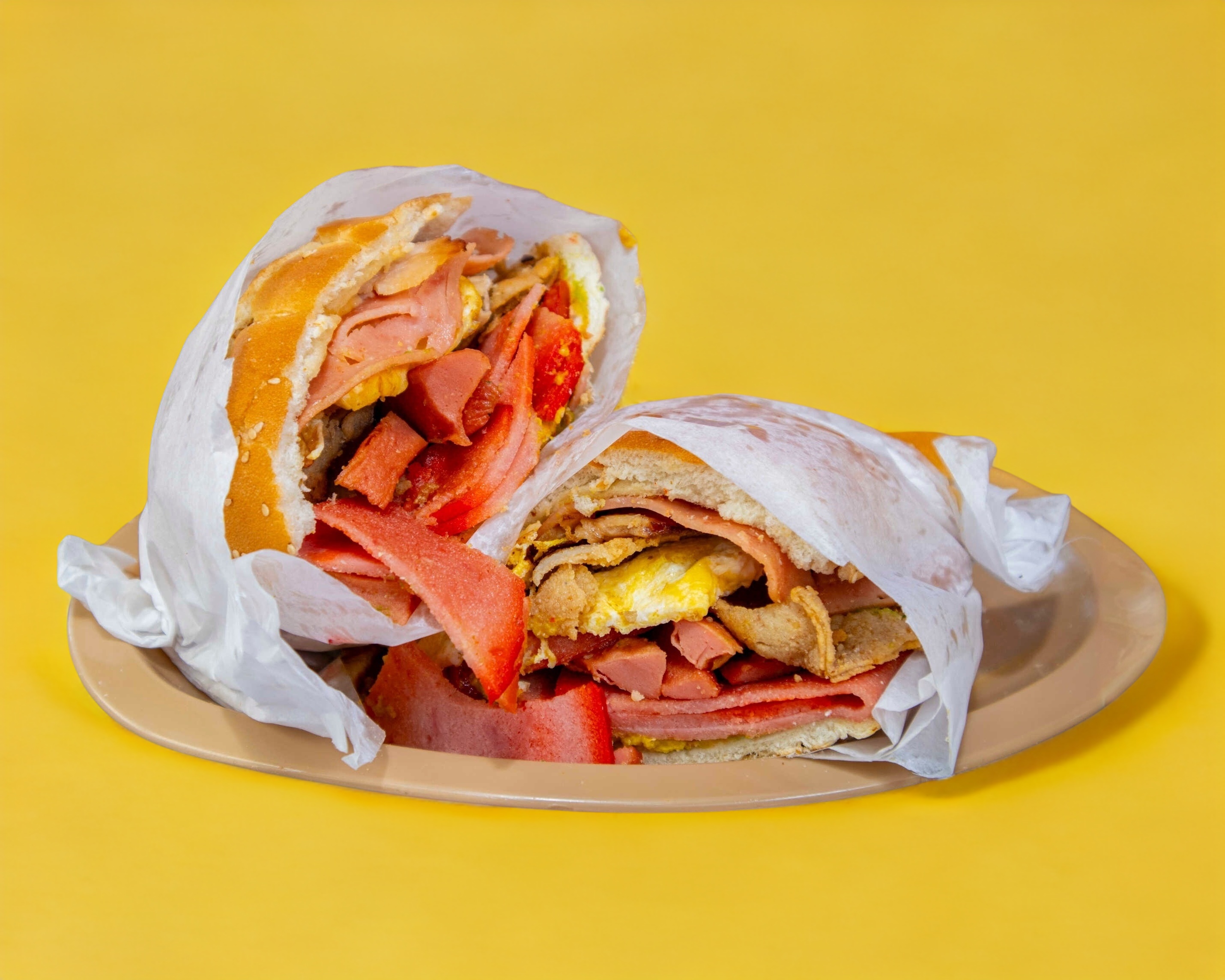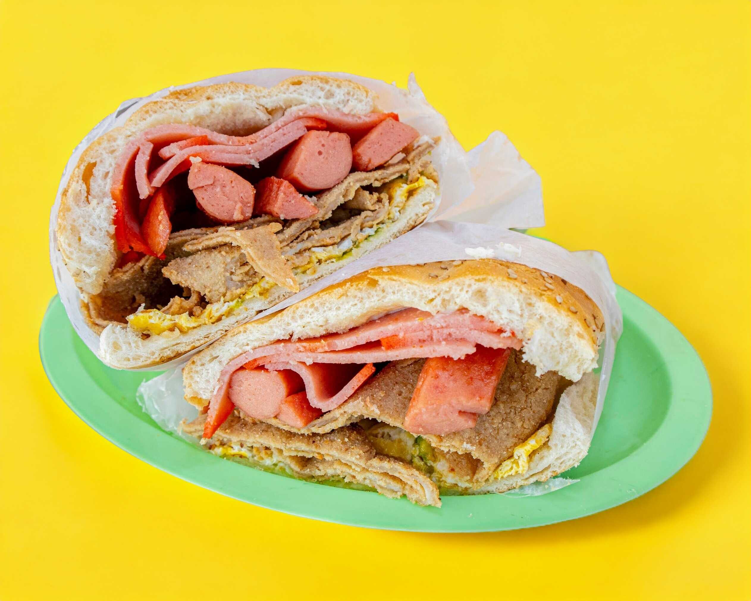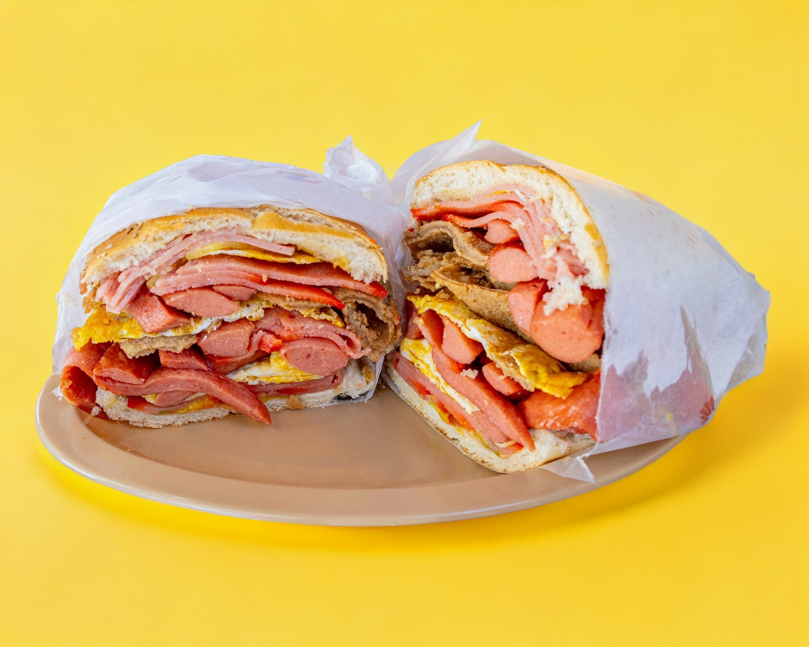 Milanesa, salchicha, pierna, huevo, quesillo.