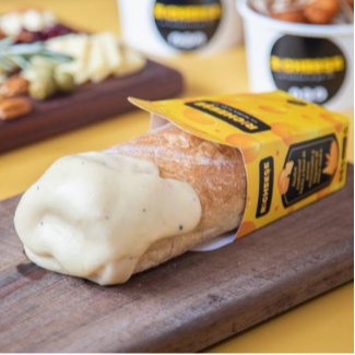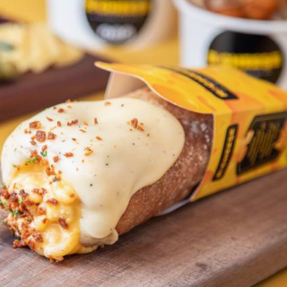 Baguette de masa madre rellena de fondue de tres quesos con mac & cheese 320g.