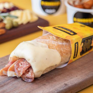 Baguette de masa madre rellena de fondue de tres quesos con salami 290 g.