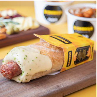 Baguette de masa madre rellena de fondue de tres quesos con salchicha italiana 320 g.