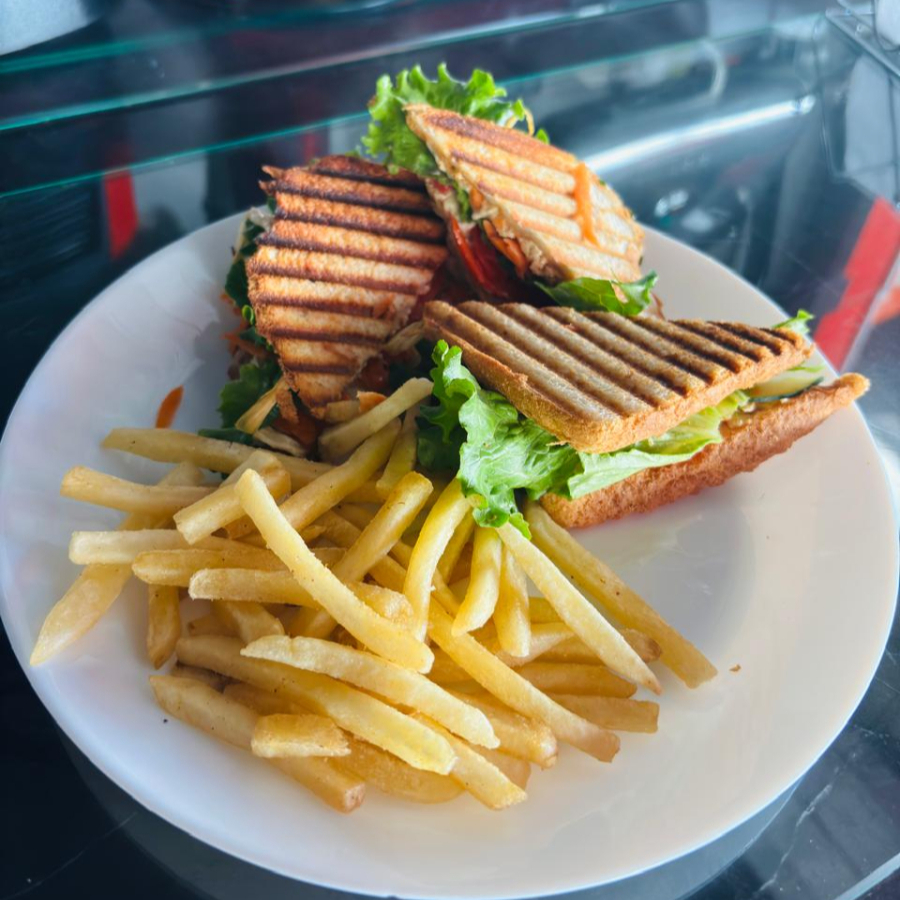 Emparedado de la proteína a elegir con mayonesa, lechuga, jitomate, zanahoria, pepino y queso manchego acompañado de papas.