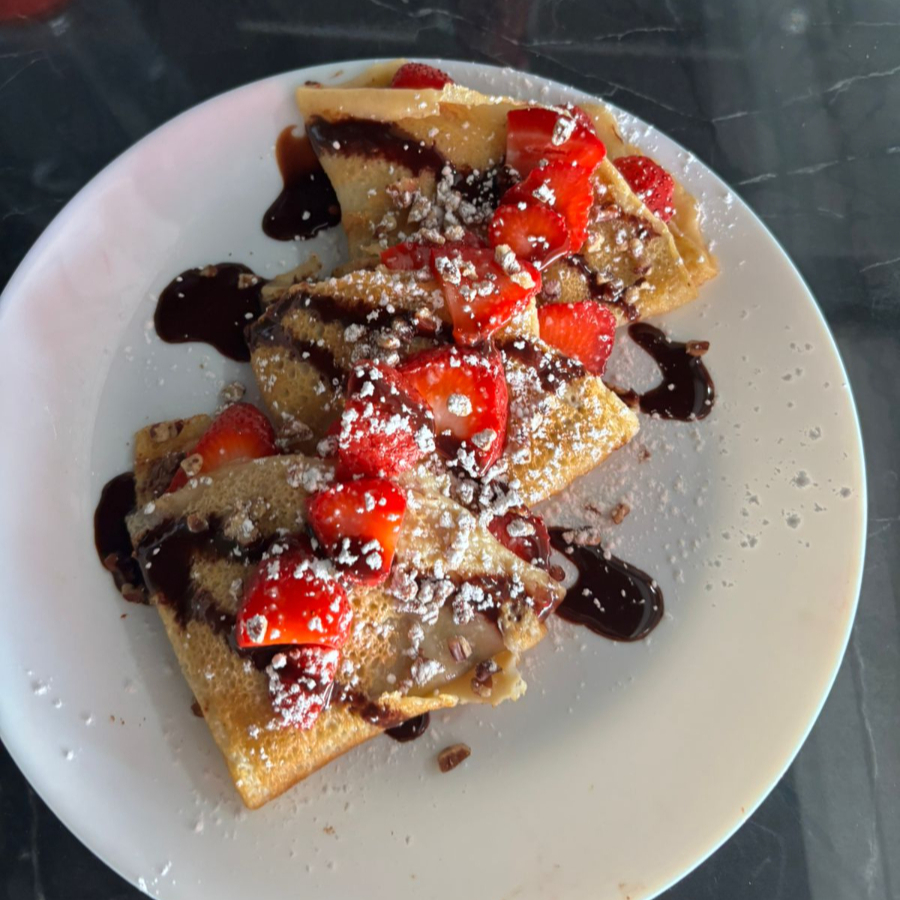 3 Mini Crepas con fruta acompañadas de toppings de tu elección.