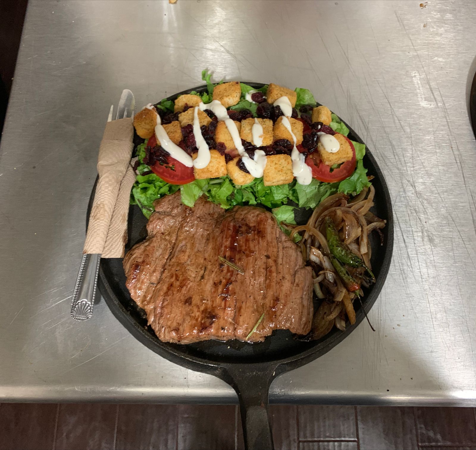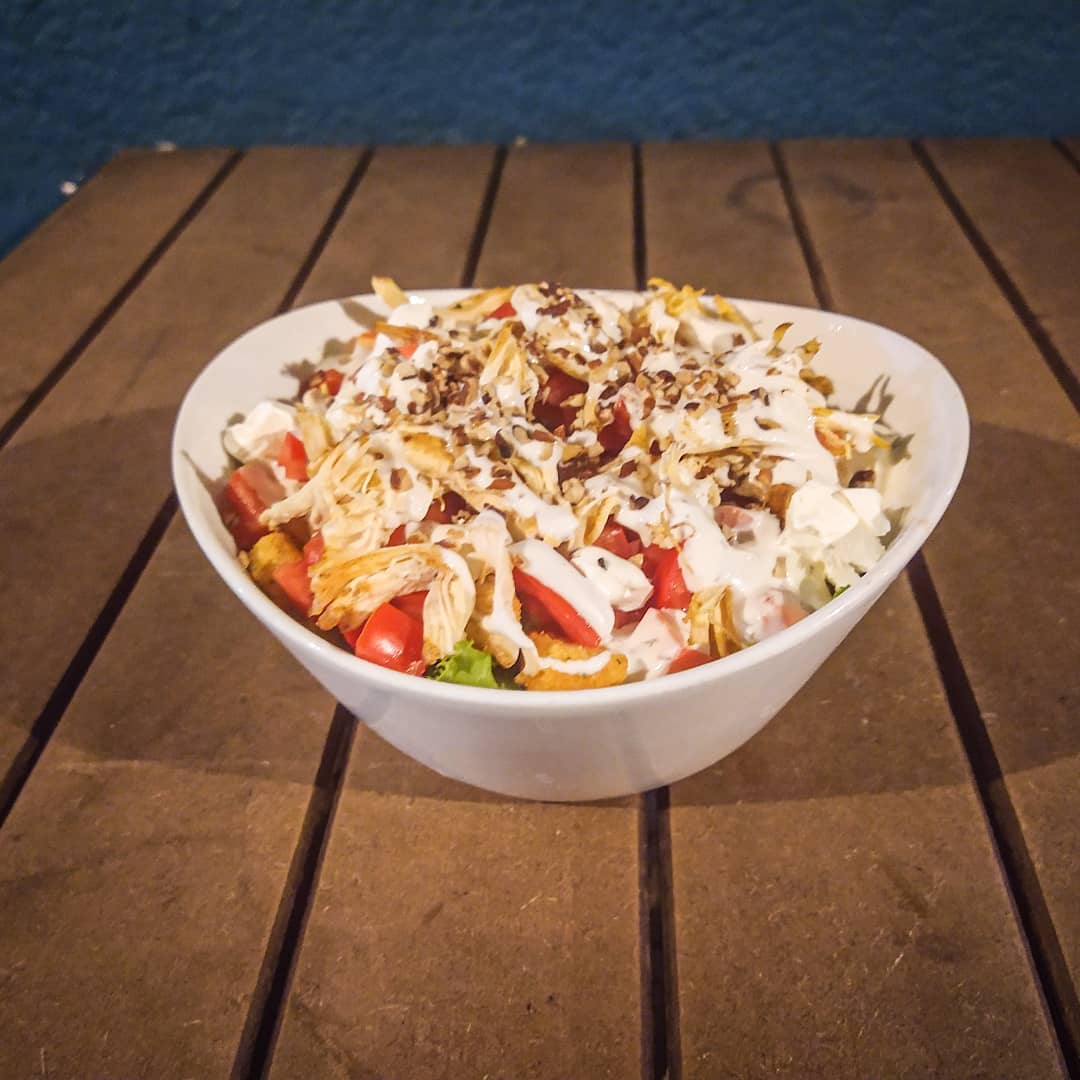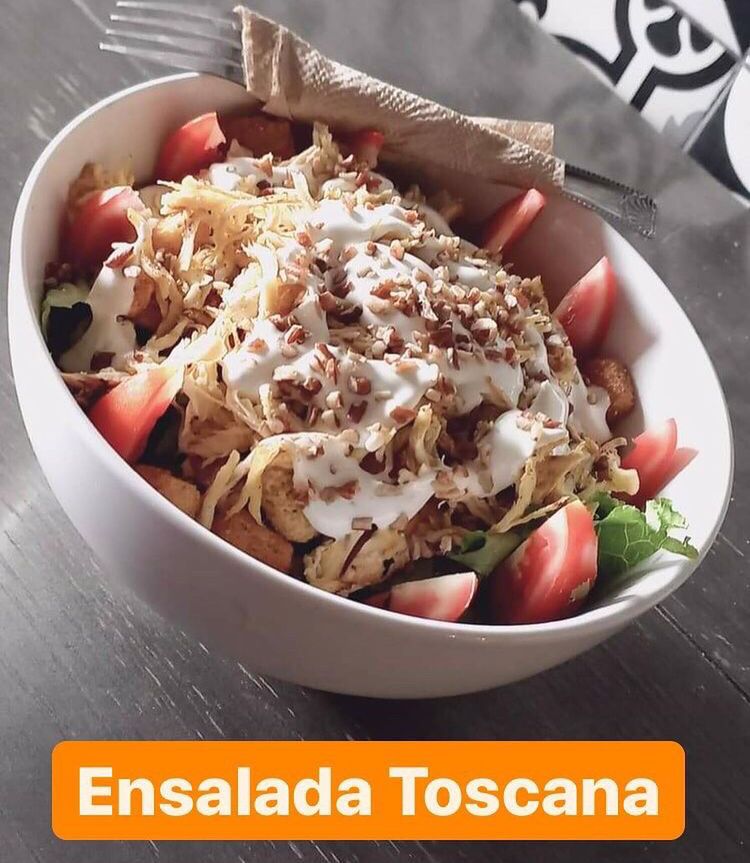 Pollo, crutones, lechuga, jitomate, philadelphia, nuez y ranch.