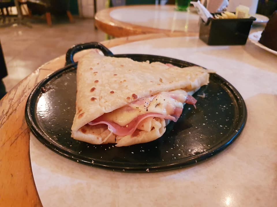 Barra de pan rellena de queso mozzarella, salsa de tomate, longaniza, cebolla y morrón.
