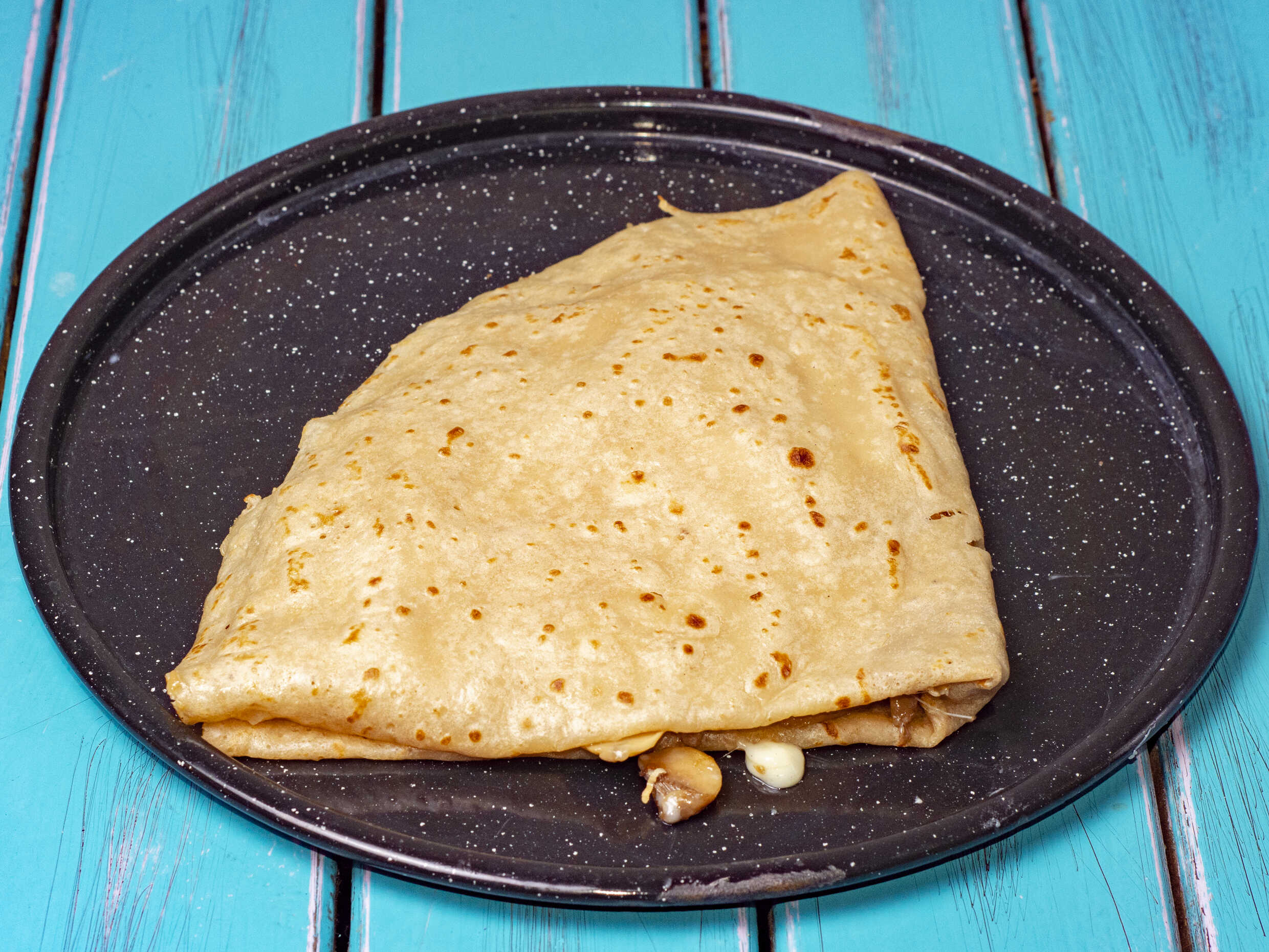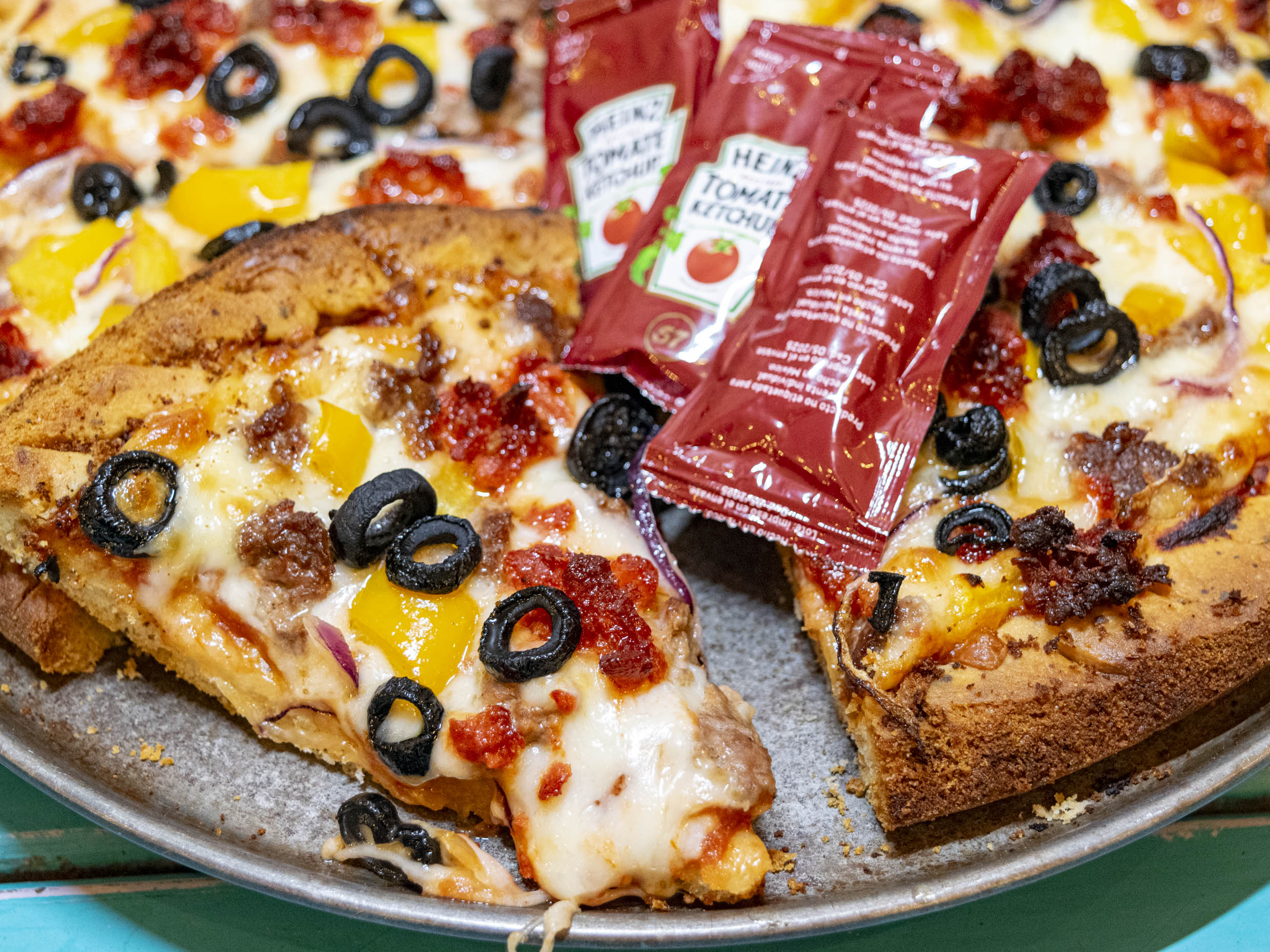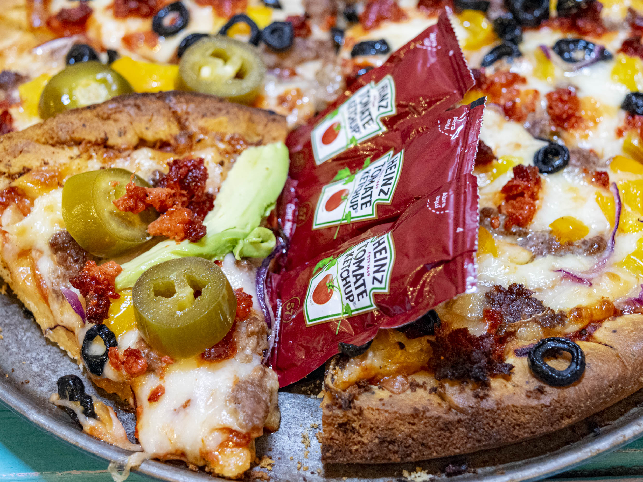 Mozzarella, champiñones, tocino, pepperoni y philadelphia.