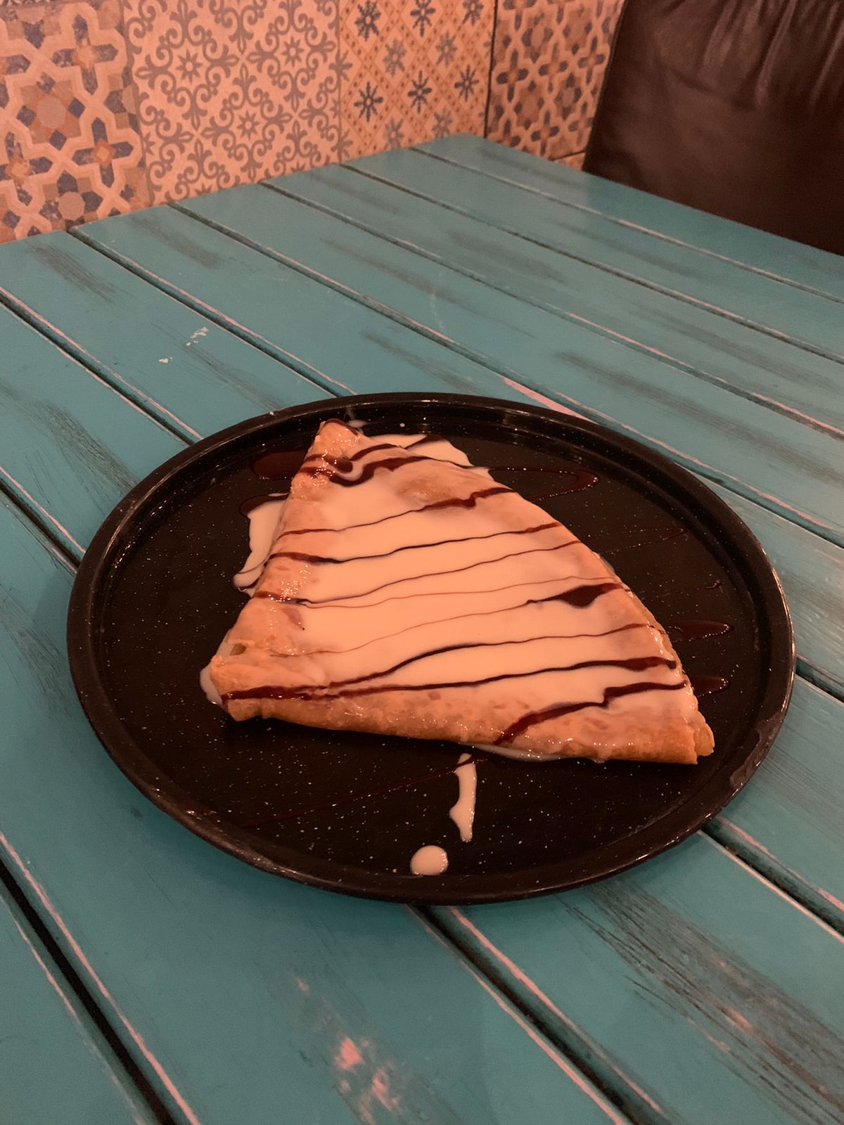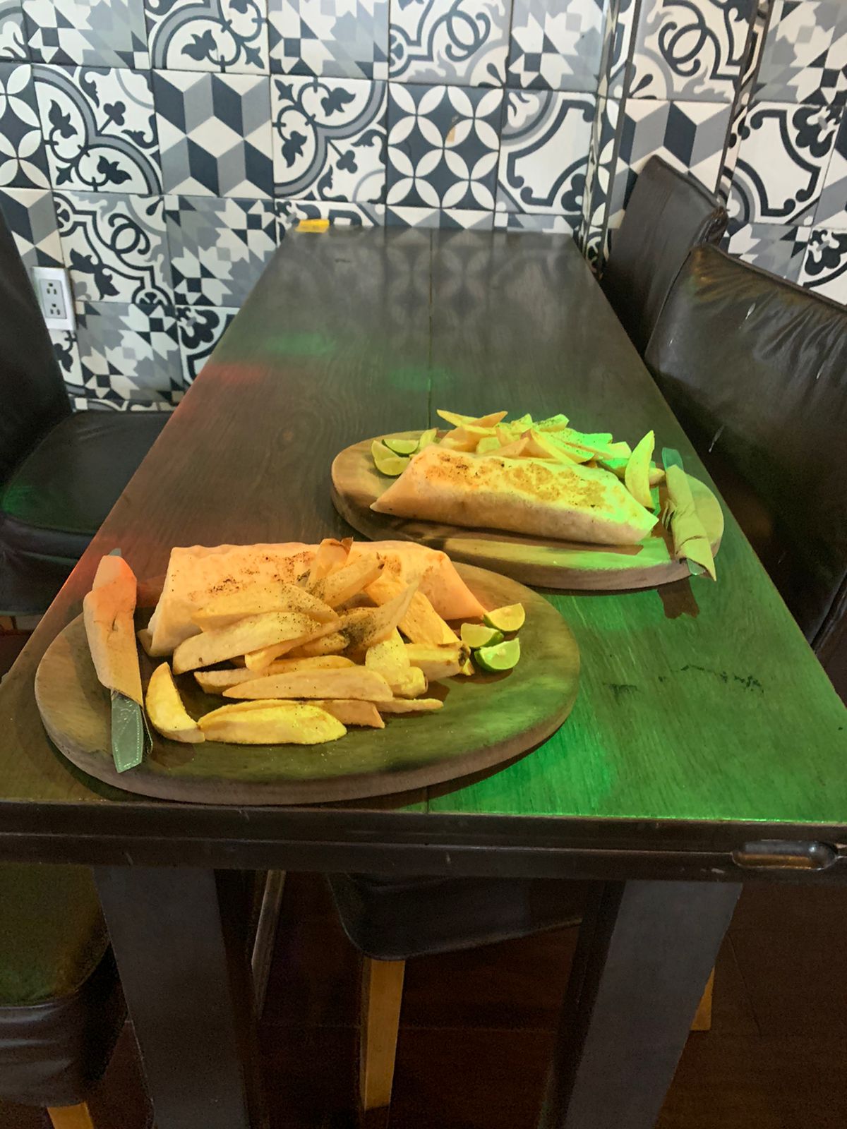 Mozzarella, frijoles, longaniza, aguacate y chile.