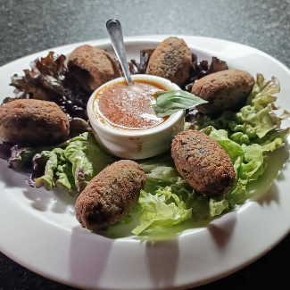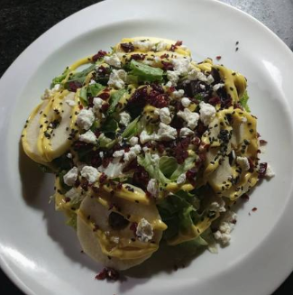 Lechugas mixtas, queso de cabra y aderezo miel mostaza.