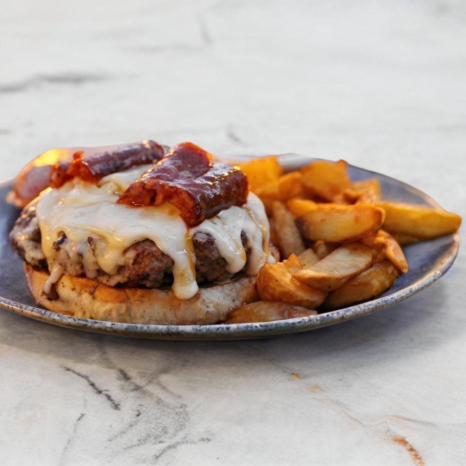 Arrachera, queso oaxaca, chorizo y guacamole; acompañado de chile habanero y papas a la francesa.
