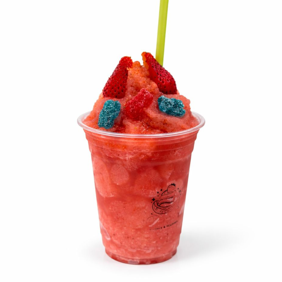 Rico Smoothie de Fresa, con Gomitas Acidas y Tajin, o Miguelito