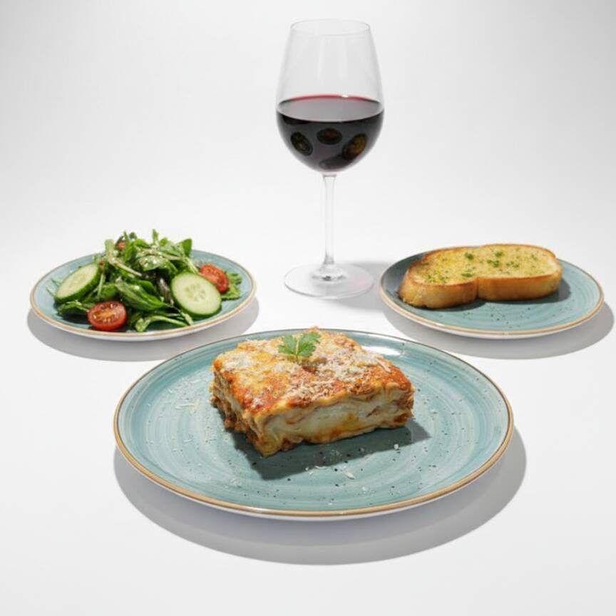 1 Lasaña de la casa, ensalada del día, pan de ajo y una bebida a elegir.