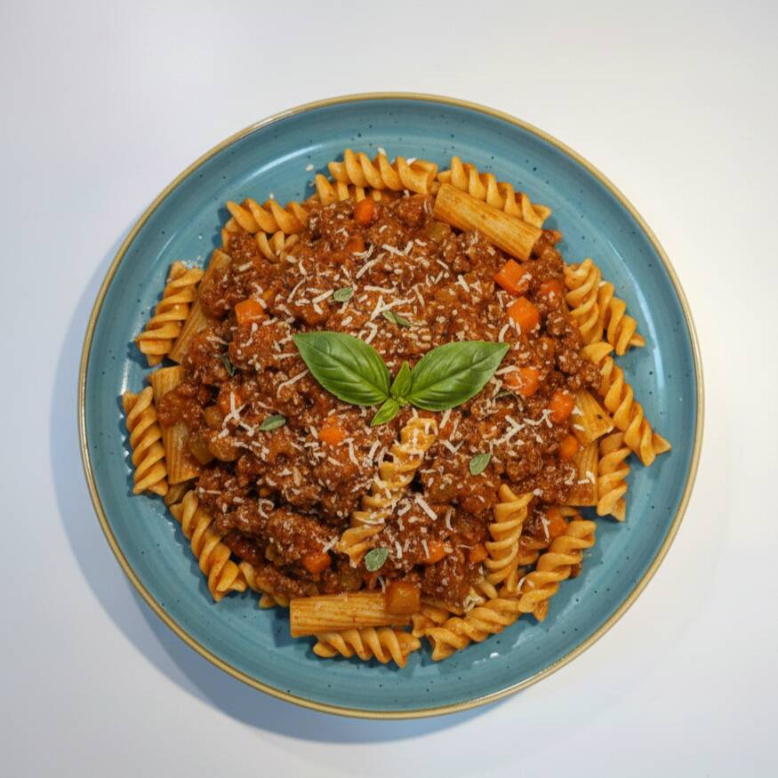 Pasta a elegir, con ragú bolognesa y carne de res.