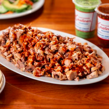 Pollo rostizado o ranchero, arroz rojo 400 g, 20 cebollas cambray más refresco familiar.