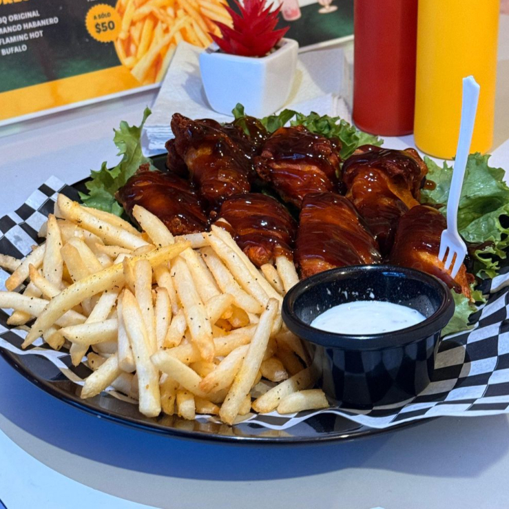 Alitas con Papas Fritas