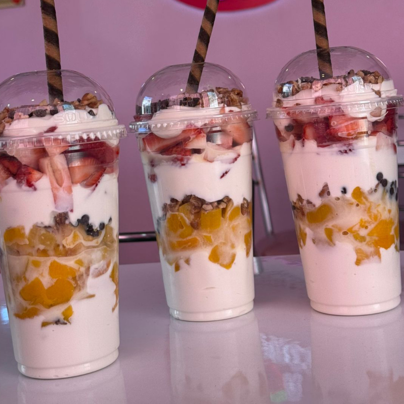 Fresa, mora, frambuesa y zarzamora con crema de la casa y dos toppings a elegir