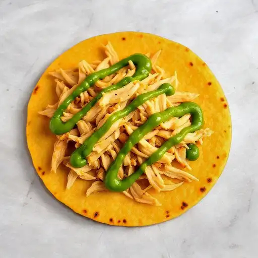 Arepa de maíz, con pollo y hogao.