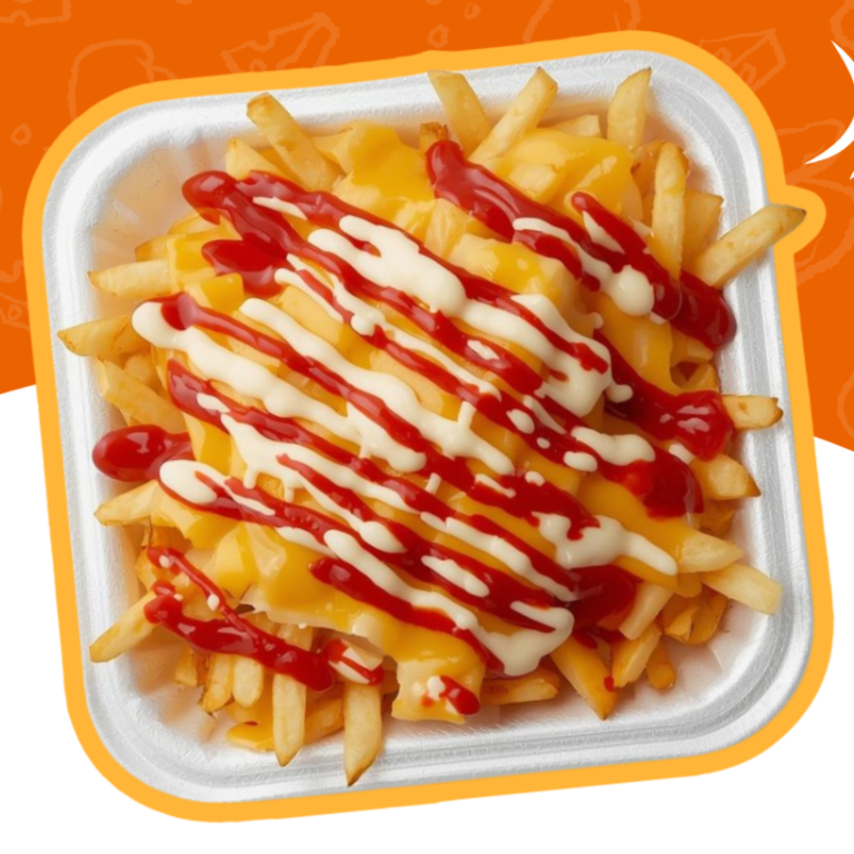 300 g de papas a la francesa con queso amarillo, crema o mayonesa, catsup y/o salsa.