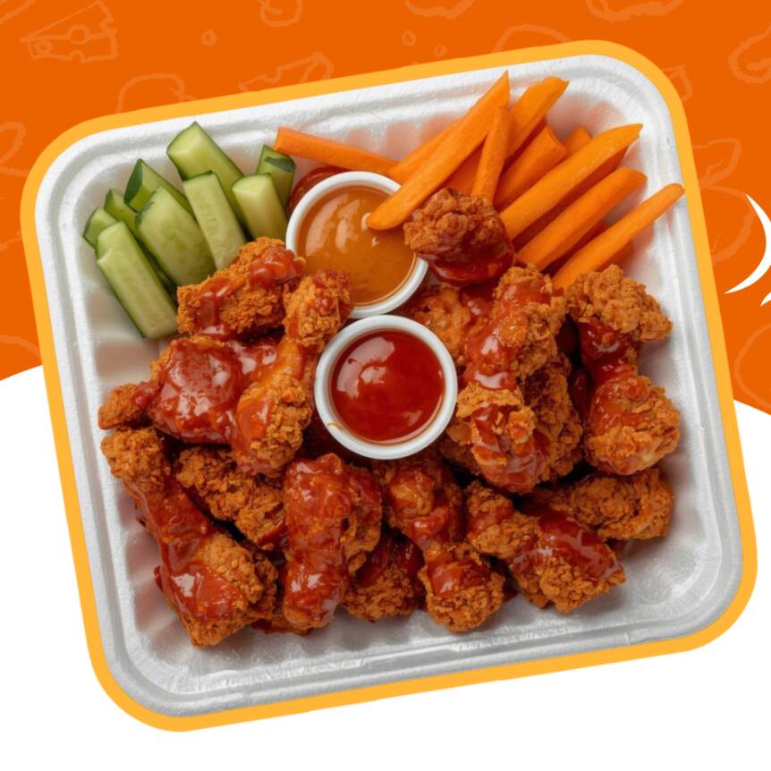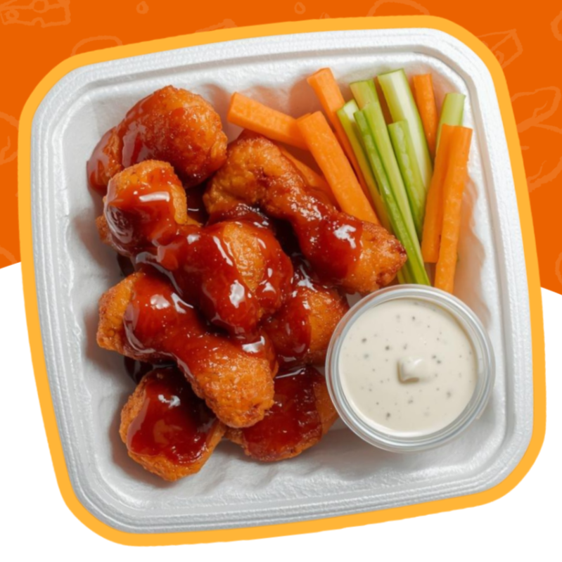 250 g de boneless crujientes, acompañados de bastones de pepino, zanahoria y 1 dip a elegir