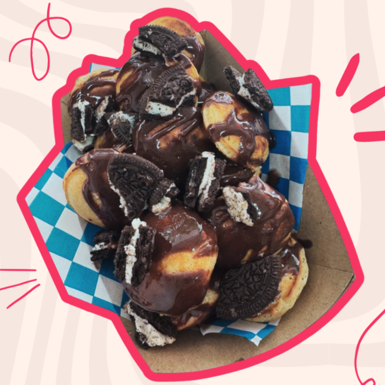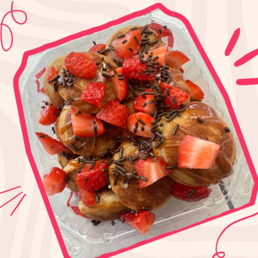 Esponjosos mini hot cakes recién preparados acompañados de fruta fresca y toppings dulces. Perfectos para consentirte.