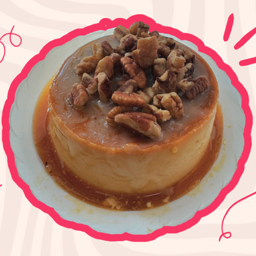 Flan casero suave y cremoso con ligero toque de vainilla y caramelo.