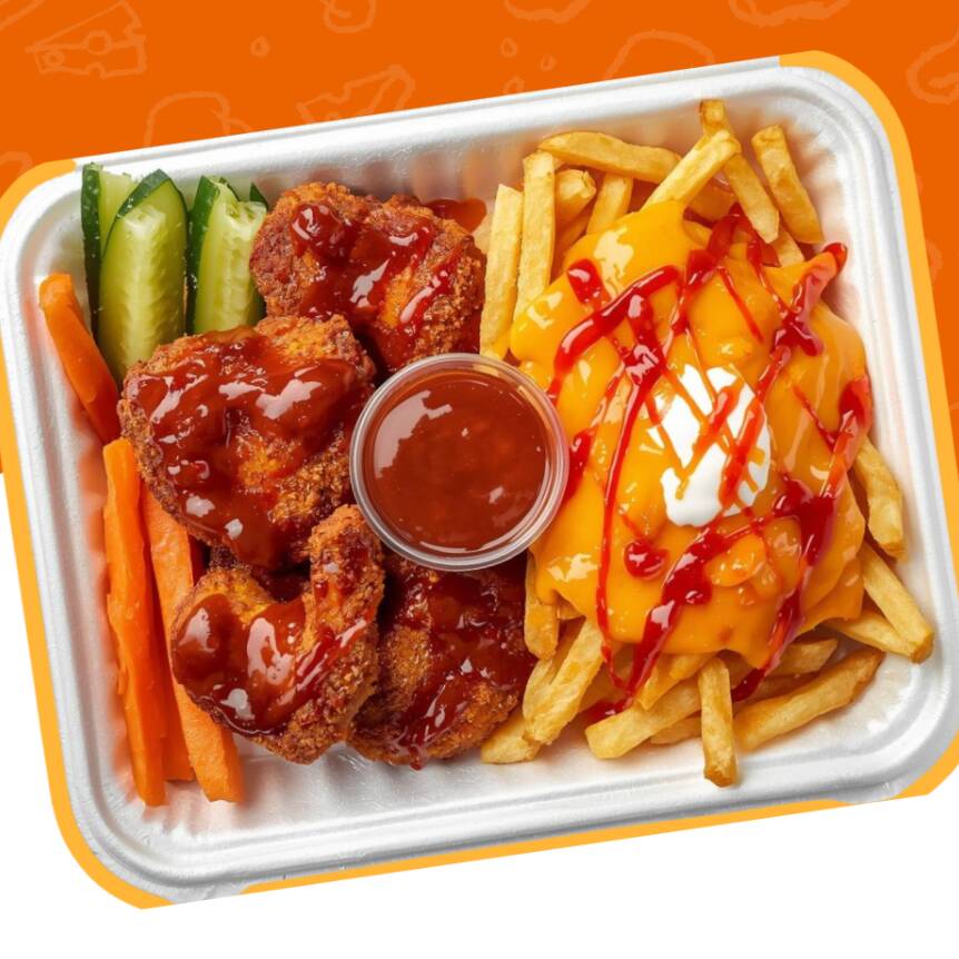 200 g de boneless + 200 g de papas Incluye pepino, zanahoria y 1 dip.