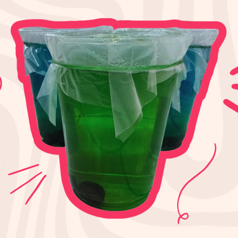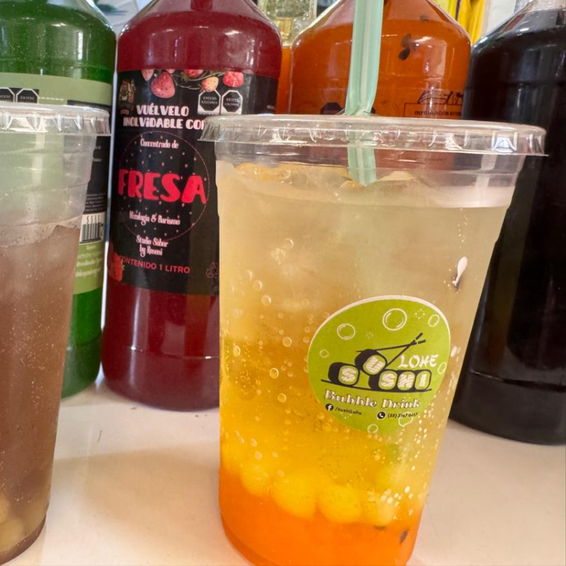 Soda refrescante preparada con Agua Mineral, Sirope de sabor (jarabe de frutas), hielo y perlas explosivas que estallan de sabor en tu boca