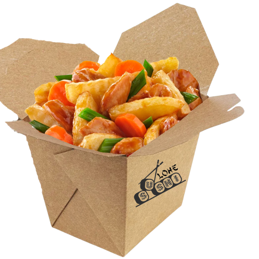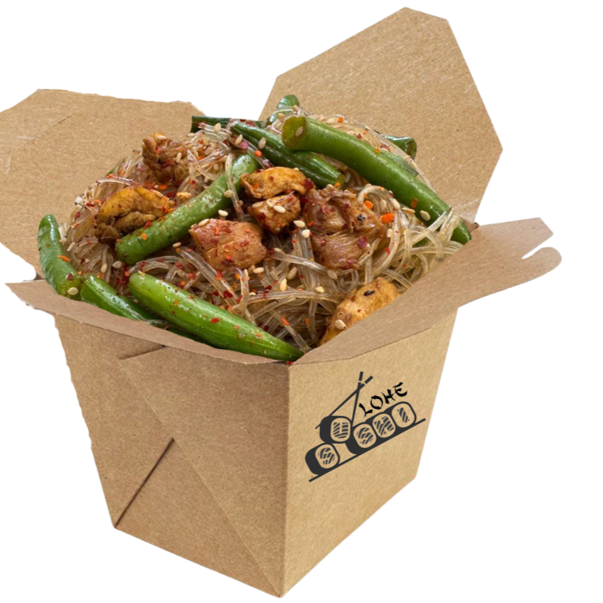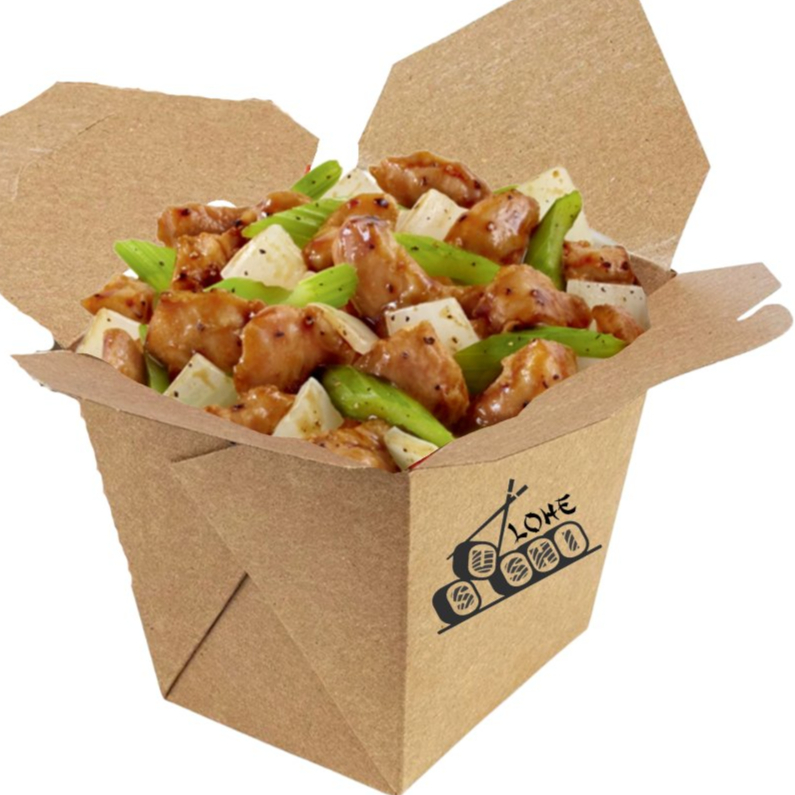 Pollo marinado salteado con pimiento rojo y calabaza en salsa oriental ligeramente picante. Perfecto si te gusta el sabor intenso con un toque de fuego.