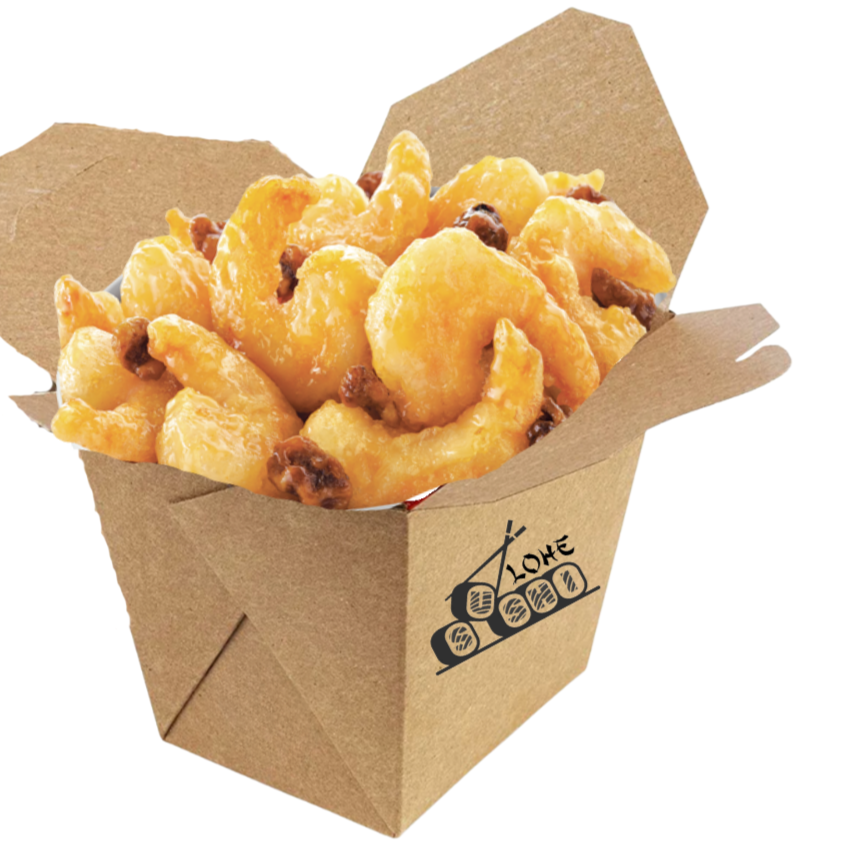 Camarones tempura bañados en salsa de miel con nuez