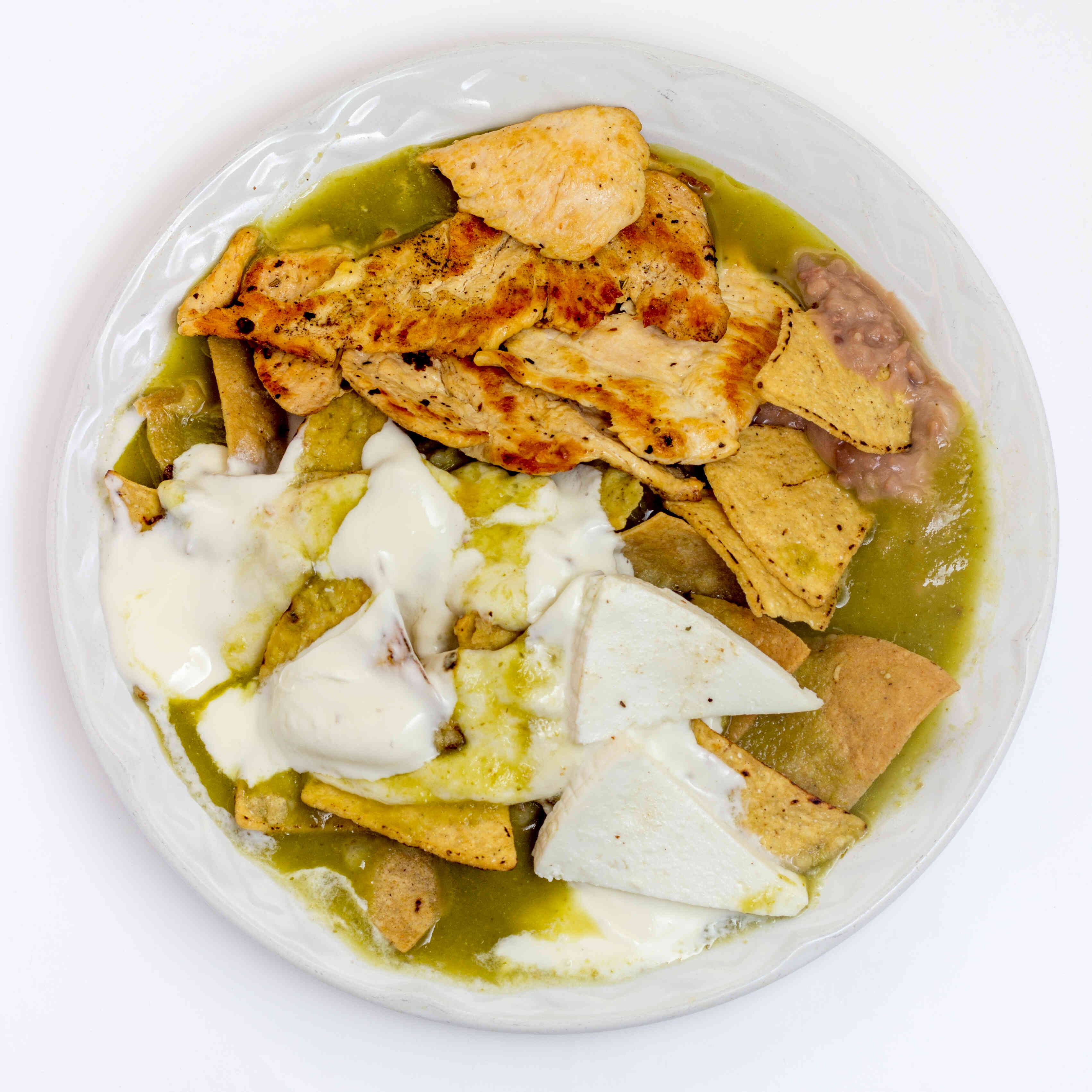Riquísimos chilaquiles verdes o rojos, con pollo o bistec de res. Incluye café, pan y fruta.