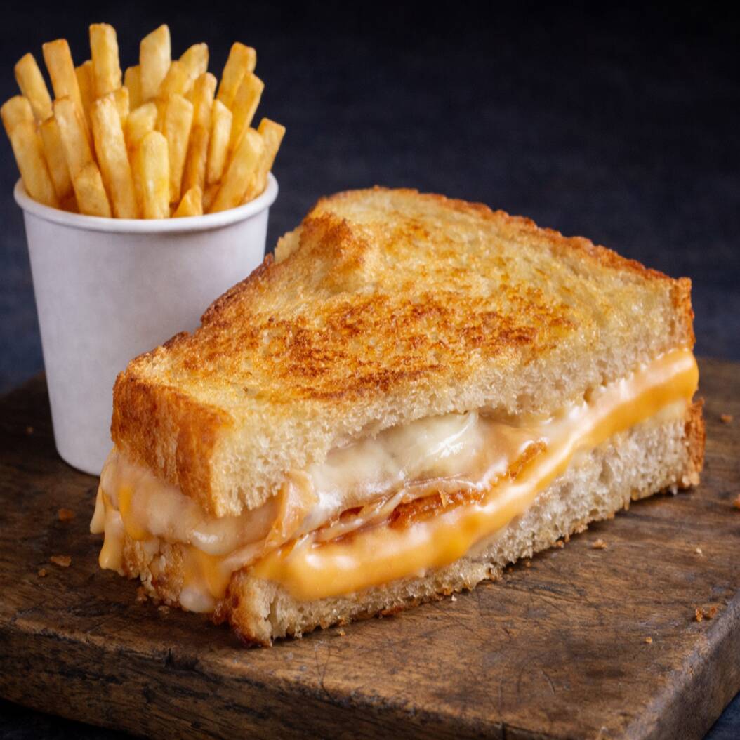 Sandwich 4 Quesos con Papas y Refresco