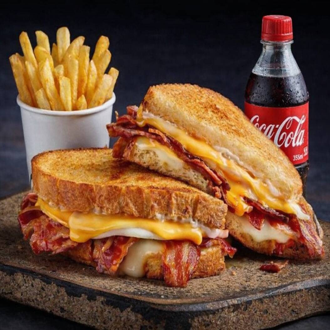 Sandwich 4 Quesos con Papas y Refresco