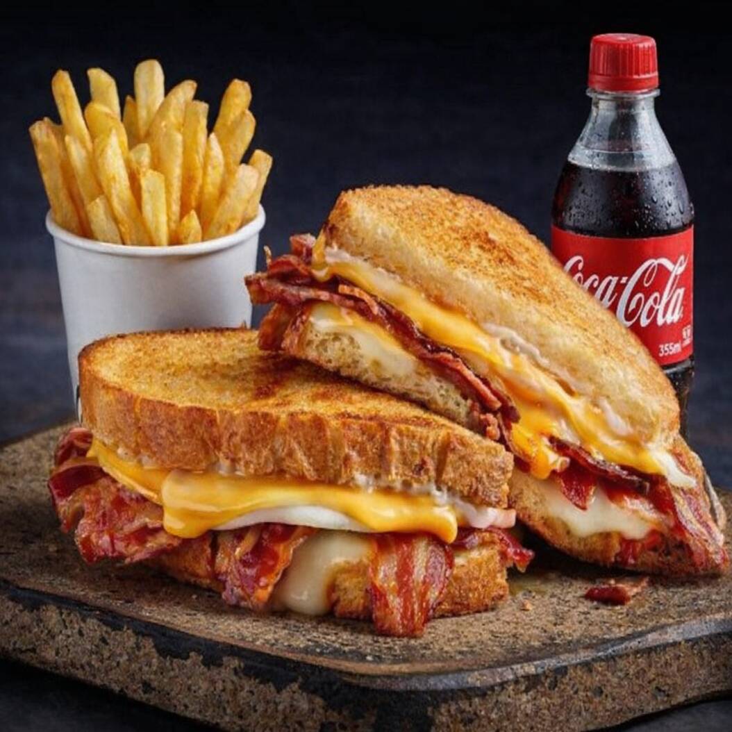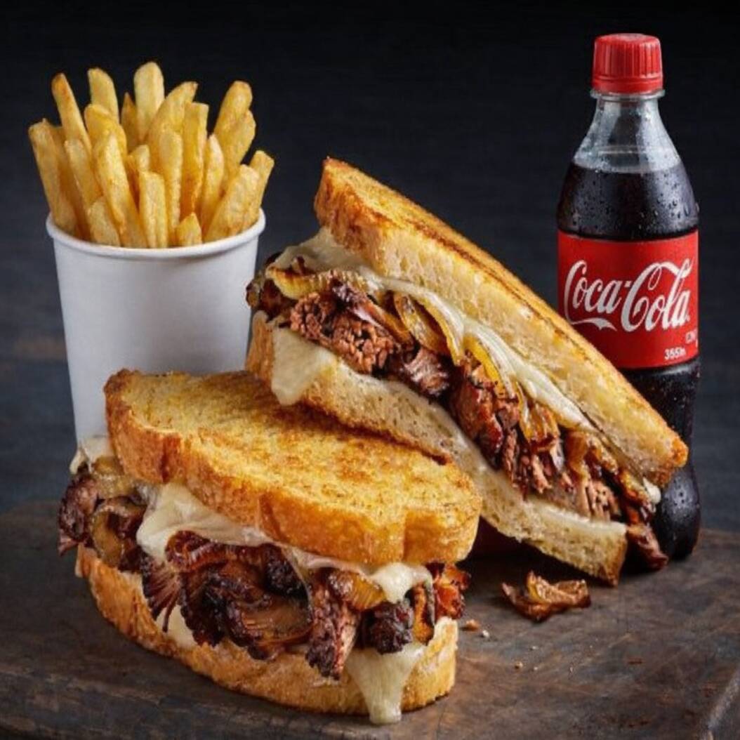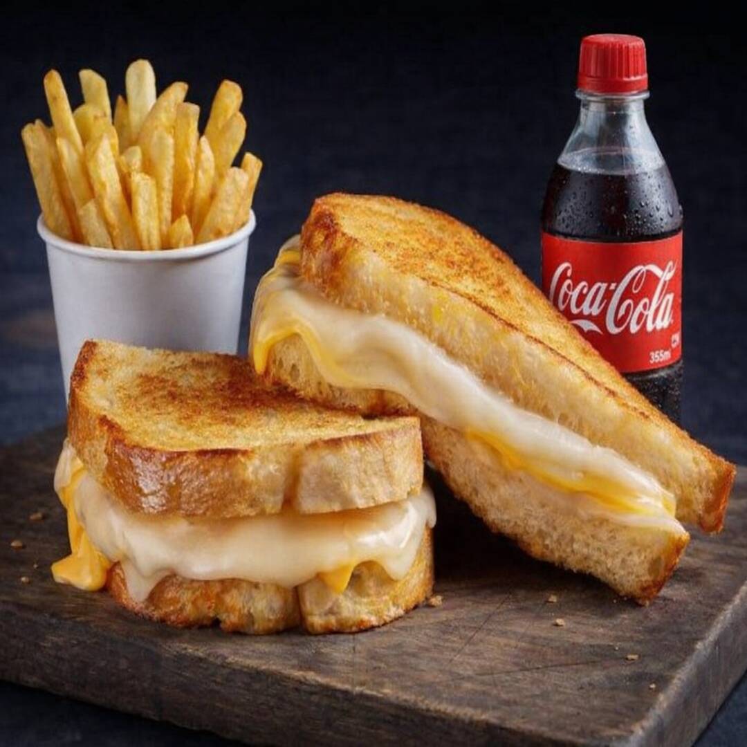 Sandwich 4 Quesos con Papas y Refresco