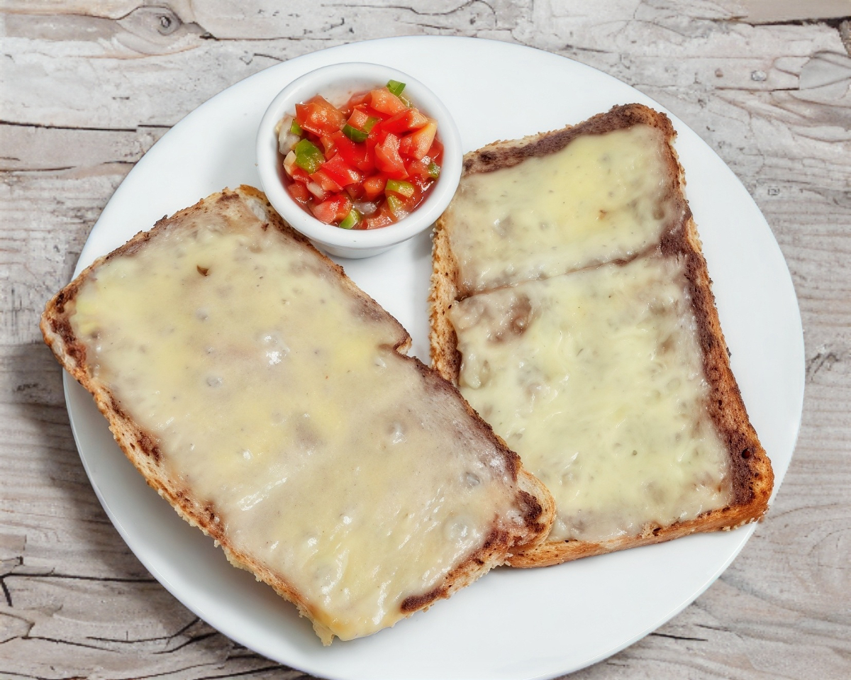 Pan de chapata con frijoles, queso gouda y pico de gallo, 2 pzas.