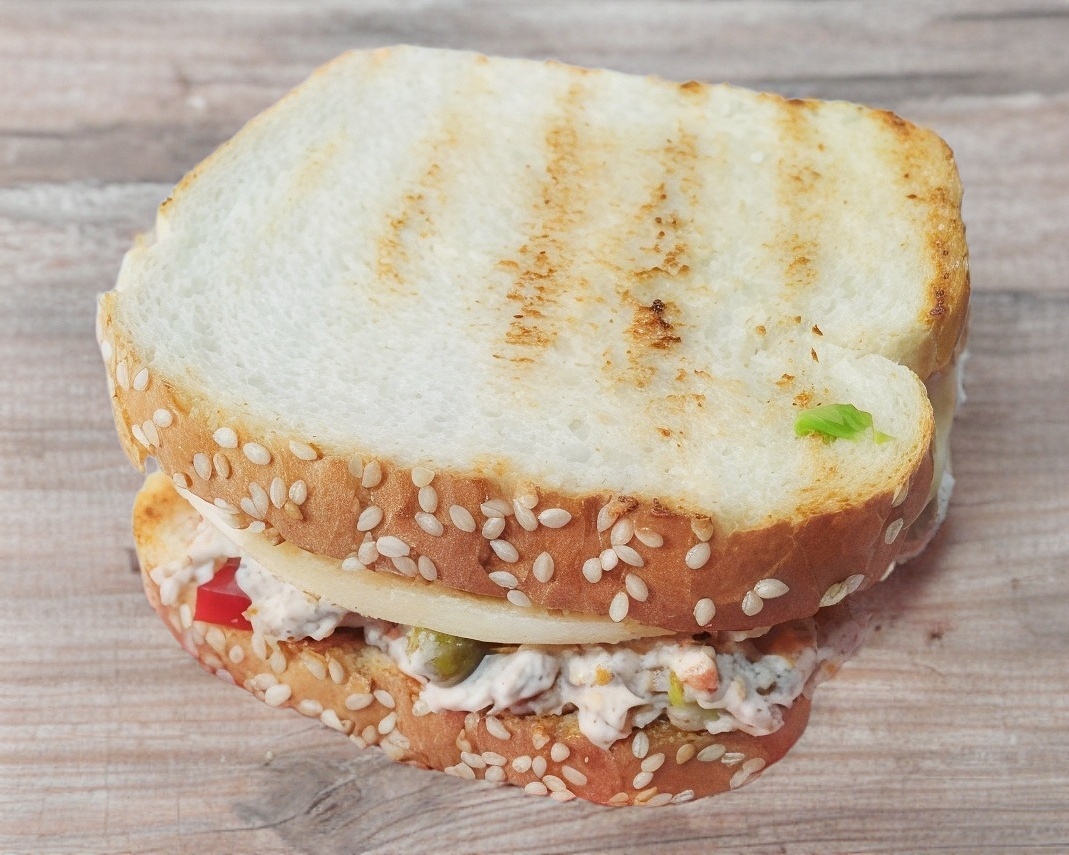 Atún con verduras, panela, manchego, aguacate, jitomate, mayonesa