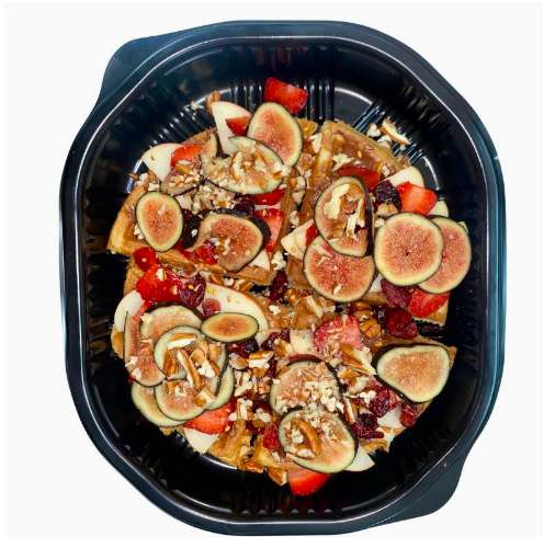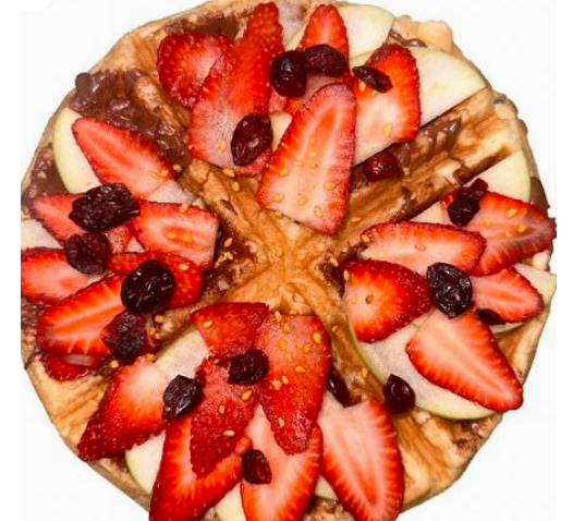 Con fresas, arándanos, manzana gala y un toque de ajonjolí garapiñado sobre cama a elegir: nutella/miel de abeja/miel de maple.