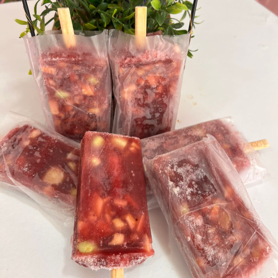 De nuestras deliciosas paletas de alcohol, hecha de vino tinto, con trozos de fruta como uvas, fresas y manzana, deliciosa y refrescante! De las favoritas de nuestros clientes