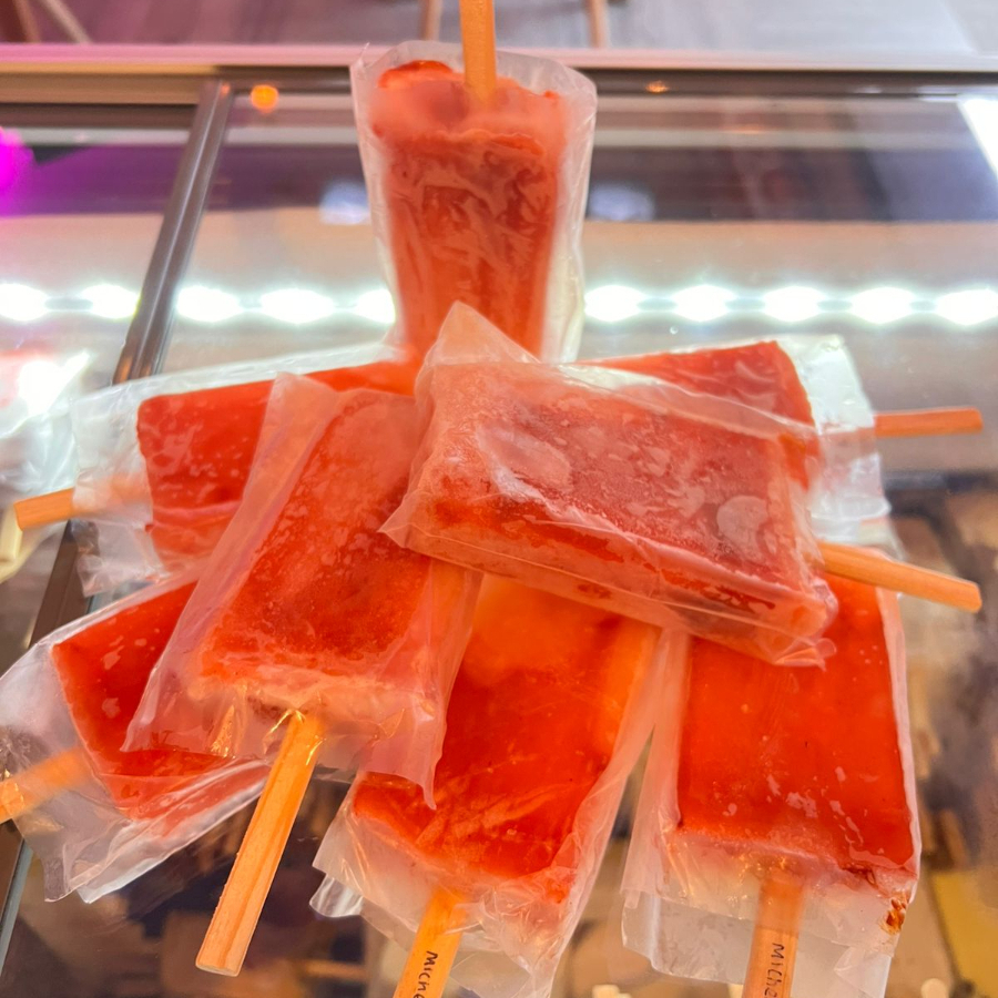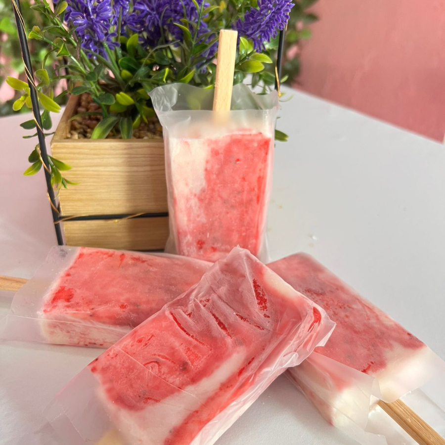 Cremosa y deliciosa paleta, hecha con mermelada de fresa, preparada por nosotros con fruta 100% natural.